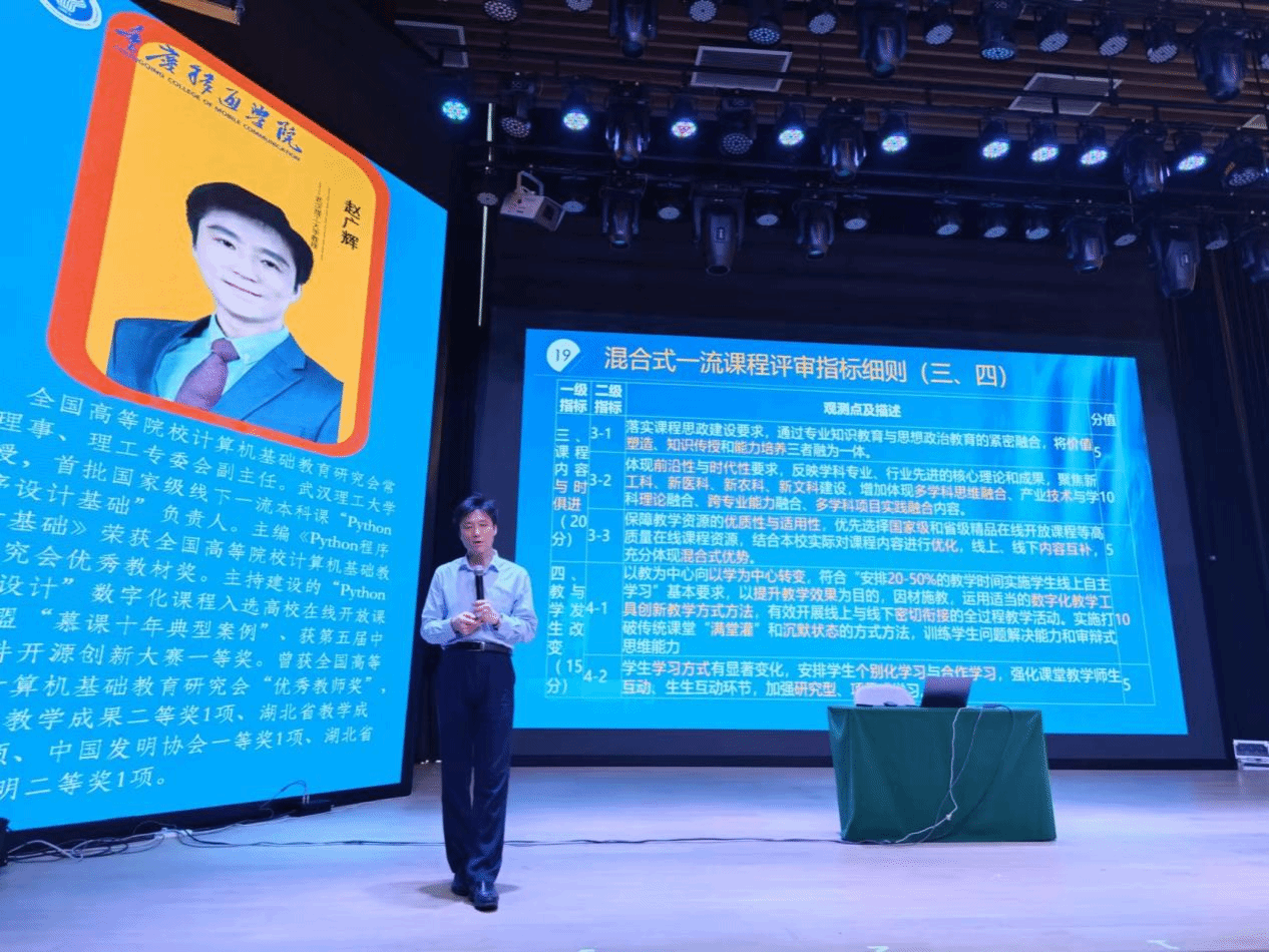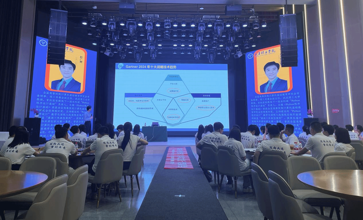 赵广辉教授以“人工智能时代 Python 程序设计教学的机遇与挑战”为题,深入剖析了AI技术在教学中的革新作用。赵教授提出,教师应利用AI优化教育教学方式及过程,实现个性化教学,以满足学生需求,同时引导学生合理利用AI,避免过度依赖,确保教学创新与学生全面发展并行不悖。