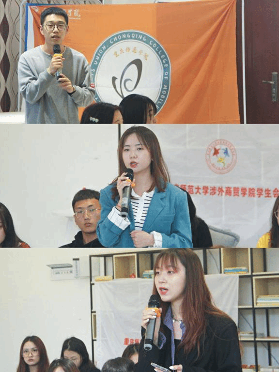 在随后的环节,三所高校就学生组织建设、部门职能、组织发展以及在发展过程中遇到的相关问题进行了深入讨论。三所高校学生组织各部门的负责人以此提出问题,将自身的问题相互交流,经验彼此共享,为日后学生组织更好的发展积攒了宝贵的经验。紧接着,三所高校就合川高校交流平台的搭建以及如何完善进行了深度分析,交流会上也提出了一个目标:在合高校如何进行优质的品牌活动的合作与打造。相信在不远的未来,三所高校肯定能发挥各学生会的特色,共同合作品牌活动。