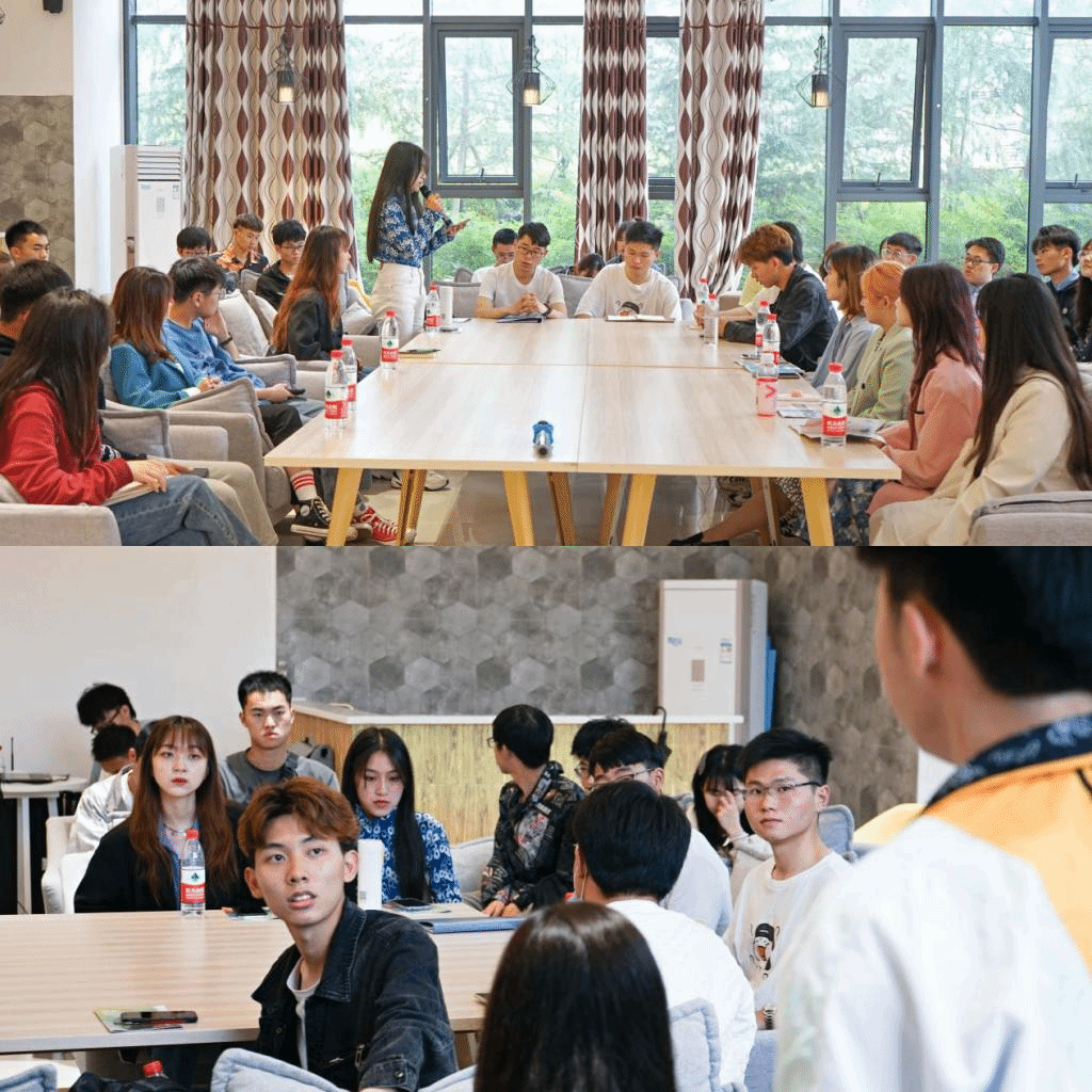 参观结束后,在天渠书院正式展开了此次交流会。会议伊始,三所学校的代表分别介绍了各自学校的办学特色及相关内容,三所高校学生组织代表就学生会各部门职能及组织建设进行了简单介绍,增进我们对彼此部门的熟悉和认知。三所高校所处的环境不一样,办学理念也有不同,因此在学生会各部门职能侧重也略有不同。交流会上,重庆对外经贸学院权益部就学生日常权益维护、问题收集等几个方面与我校学生会权益部进行了深度交流学习,双方就“解决学生权益问题”为切入口,展开了探讨。重庆工商大学派斯学院创新创业部和我校学生会外联部就赞助拉取、合同审批、搭建对外交流桥梁,等三个方面进行了交流分析,在探讨交流后双方也提出了在外联工作上遇到的麻烦和困难,也为以后对外交流与发展打下一定的基础。