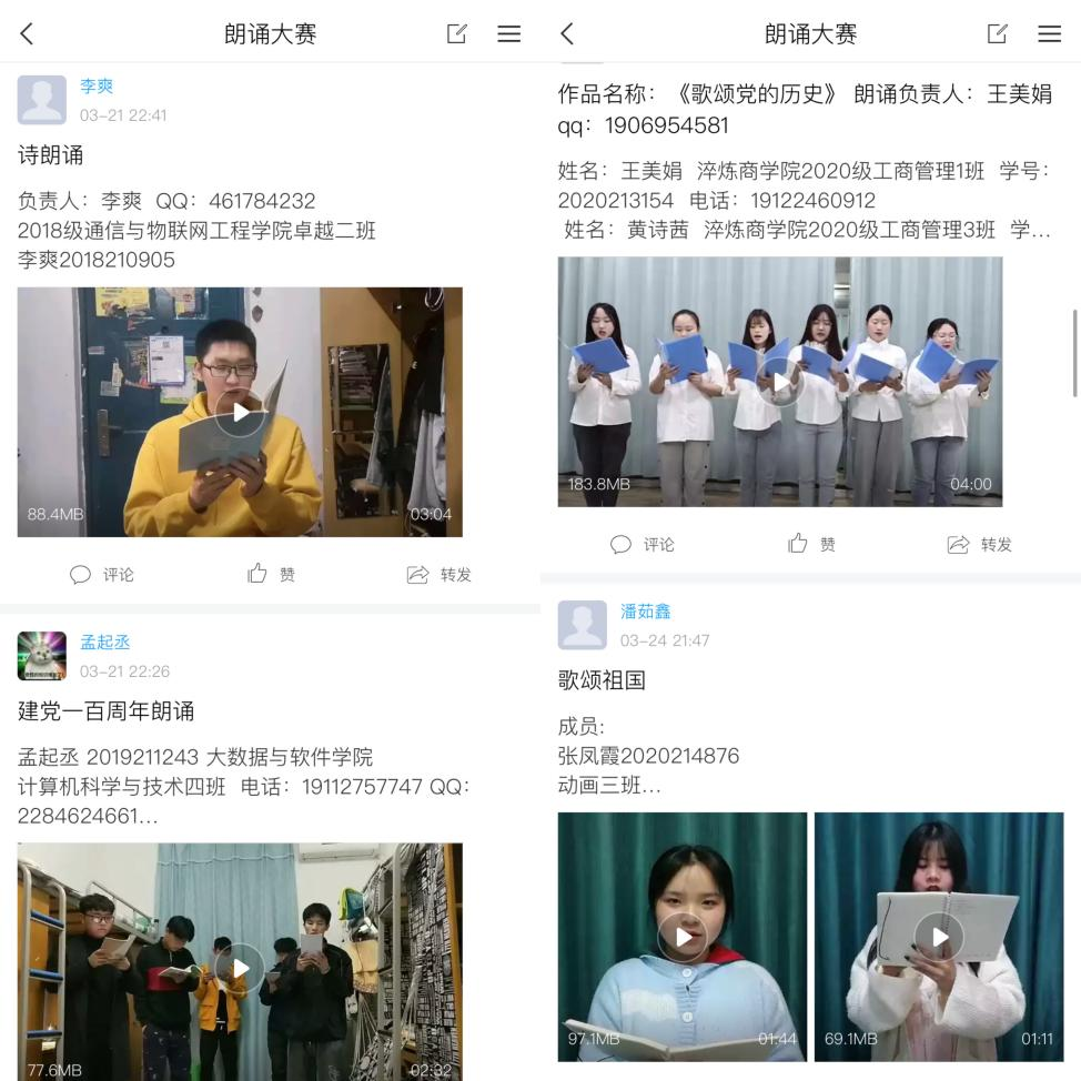 “今年图书馆的4.23主题活动以“建党100年”为主题,内容丰富,形式多样,充分运用了图书馆的数字资源—超星学习通,操作简单,使用方便。团队在提交配音作品的同时也欣赏了其他团队的作品,相互学习提高。借此契机,不仅可以让广大师生读者参与到世界读书日的活动中来,更让各位青年人积极学习党史,了解历史,以此来提升广大青年的内涵与修养。同时,活动也结合学校“四位一体”的人才培养模式,和“完满教育”相结合,培养新时代的新青年。”配音大赛一等奖获奖团队王美娟同学感慨到。