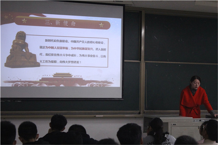 恰逢学校选举积极入党分子之际,王之老师首先对这些同学提出一个尖锐的问题“你的入党动机是什么?”。众说纷纭,但是大多数同学还不够了解党,没有认真的想过自己加入的是一个什么样的组织。辅导员从党的背景,党的信仰,党的历史,党的奋斗结果等方面让同学们更加深入的了解到党的神圣之处,那段拼搏的岁月,那段艰难的时光,不应该被历史的洪流抹去,多少先辈的血与汗才能换得如今安定的生活,这段历史应该铭记在每位同学的心中。