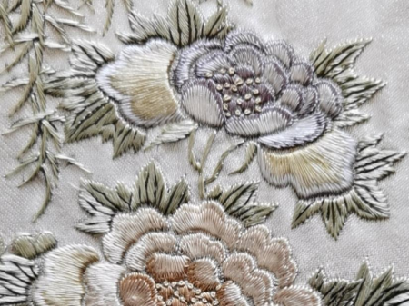 客家缠花又称春仔花,是我国一项传统女红工艺。制作缠花首先需要将纸板剪成不同的基础形状,然后将金属丝夹在纸板里,用丝线均匀缠绕,最后进行弯折组合。在课堂中,有社员提到缠花缠绕的过程和刺绣有些相似。事实上客家人刺绣的时候也有衬垫纸板的方式,所以缠花有可能也是这样发展而来。如粤绣为了追求夸张的立体感一般会在绣布上衬垫棉花,用绣线密密铺满图案,不会露底,所以缠花与刺绣确实有着千丝万缕的联系。