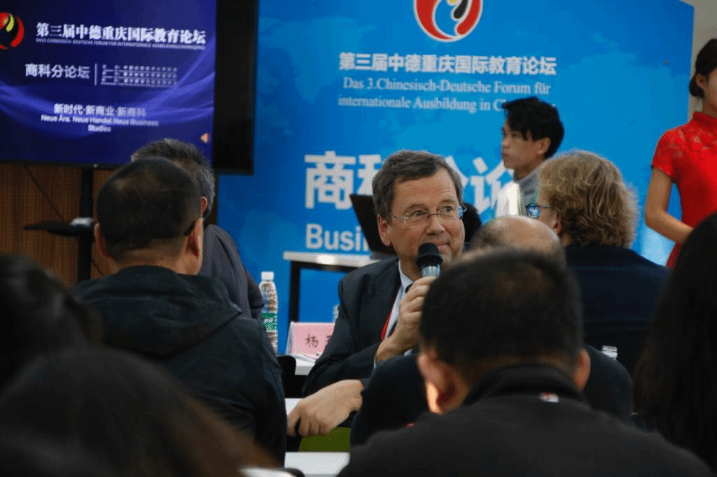 在此次分论坛上,德国埃森市科学之城委员会主席Stefan Heinemann、埃森经济管理应用大学副校长Thomas Heupei、北京优西国际咨询创始人、中国社会科学院大学商业案例中心尹朝安教授,以“公司的数字技能—当前所选研究的结果”、“未来的工作世界—数字化如何改变我们的工作和工作方法”、“商会与商科教育”等为主要内容作了相关讲解,并与现场的老师和同学们交流,让我们对前沿热点话题产生了很多新的认知。