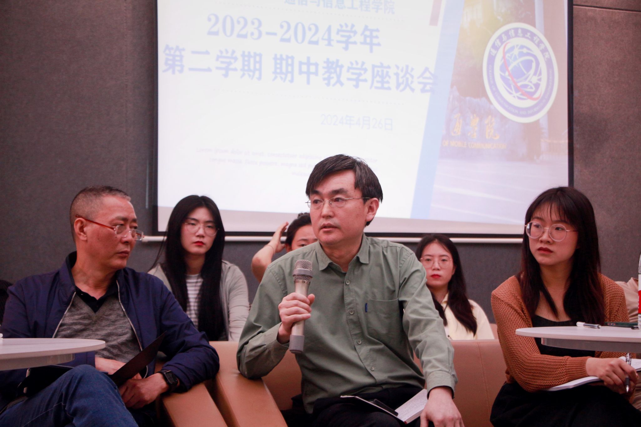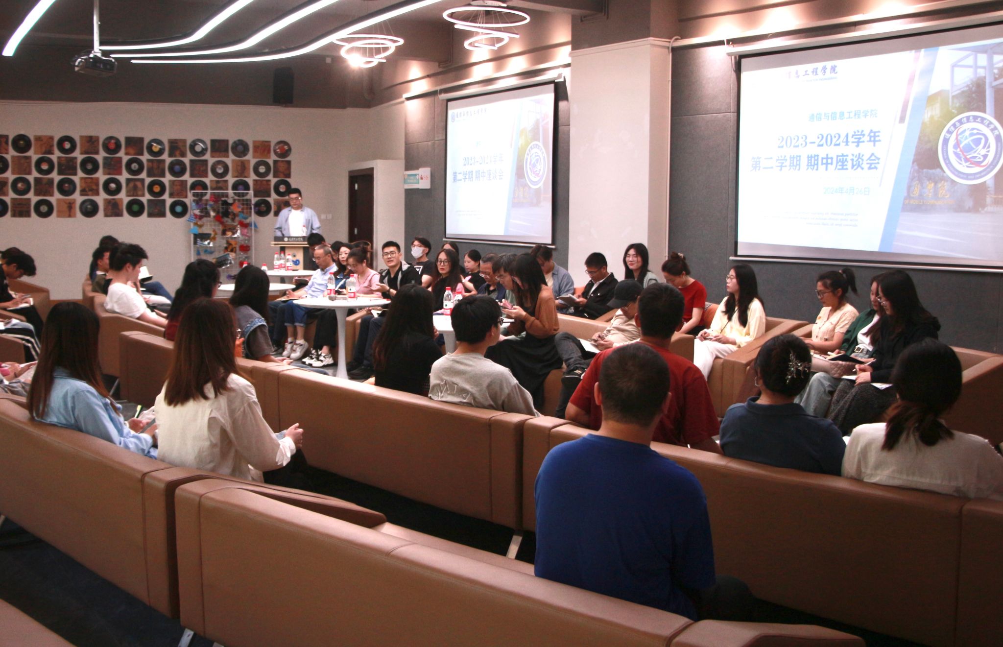 讲学砥节,相语以道德,相勖以恭行,学风建设是促进打造高校高质量人才的基本保障,激励学生奋发勤勉,塑造更好的自己。为贯彻落实我院学风建设的根本要求,进一步调研学生对教学、管理等方面的需求、意见和建议,帮助学院更好地建设良好的学风,提高教育教学质量,促进教育教学工作更加良好地发展,为保障优质育人环境,致力打造双一流之外的首选大学,通信与信息工程学院于2024年4月26日在南湖书院声影活动室开展2023-2024学年第二学期期中学生座谈会。