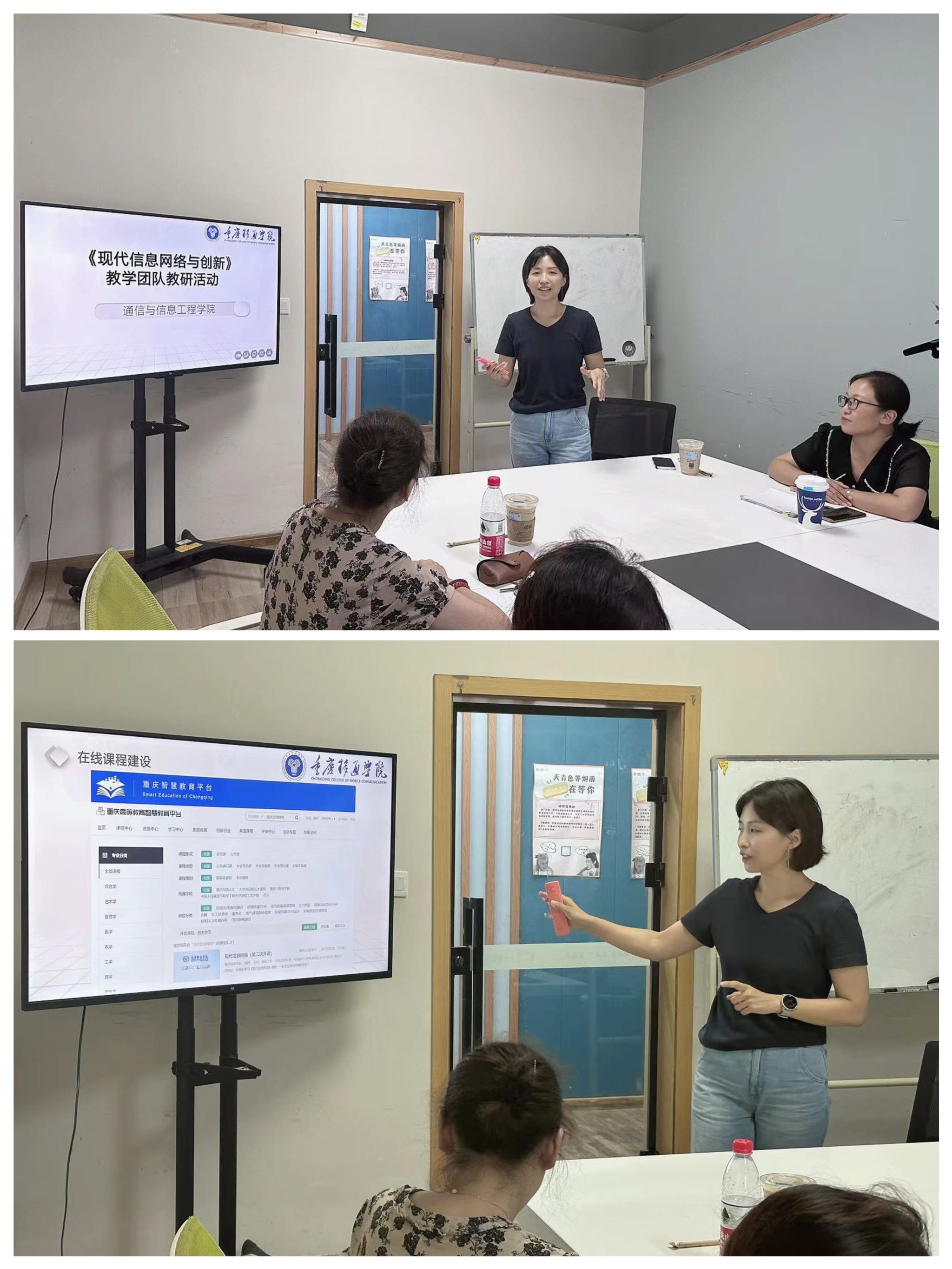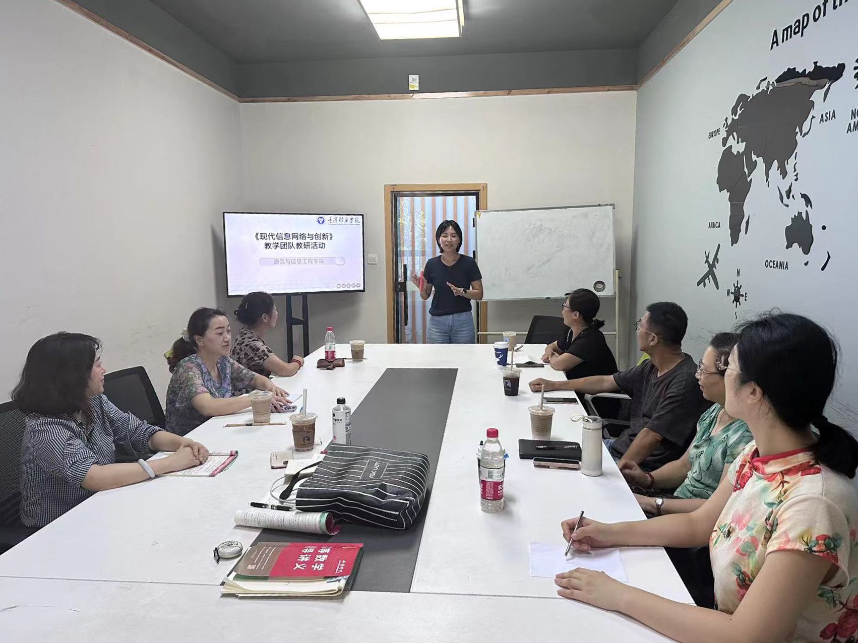喻婷老师向大家梳理了近期教学团队的主要工作,并详细解读了学校关于课堂教学改革创新的实施方案,以《现代信息网络》课程为落脚点,整理了在课堂教学内容、课堂教学模式、课堂教学方法、课程考核方式等方面已有的一些工作思路和具体工作落实,并对本学期试点情况进行了汇报。