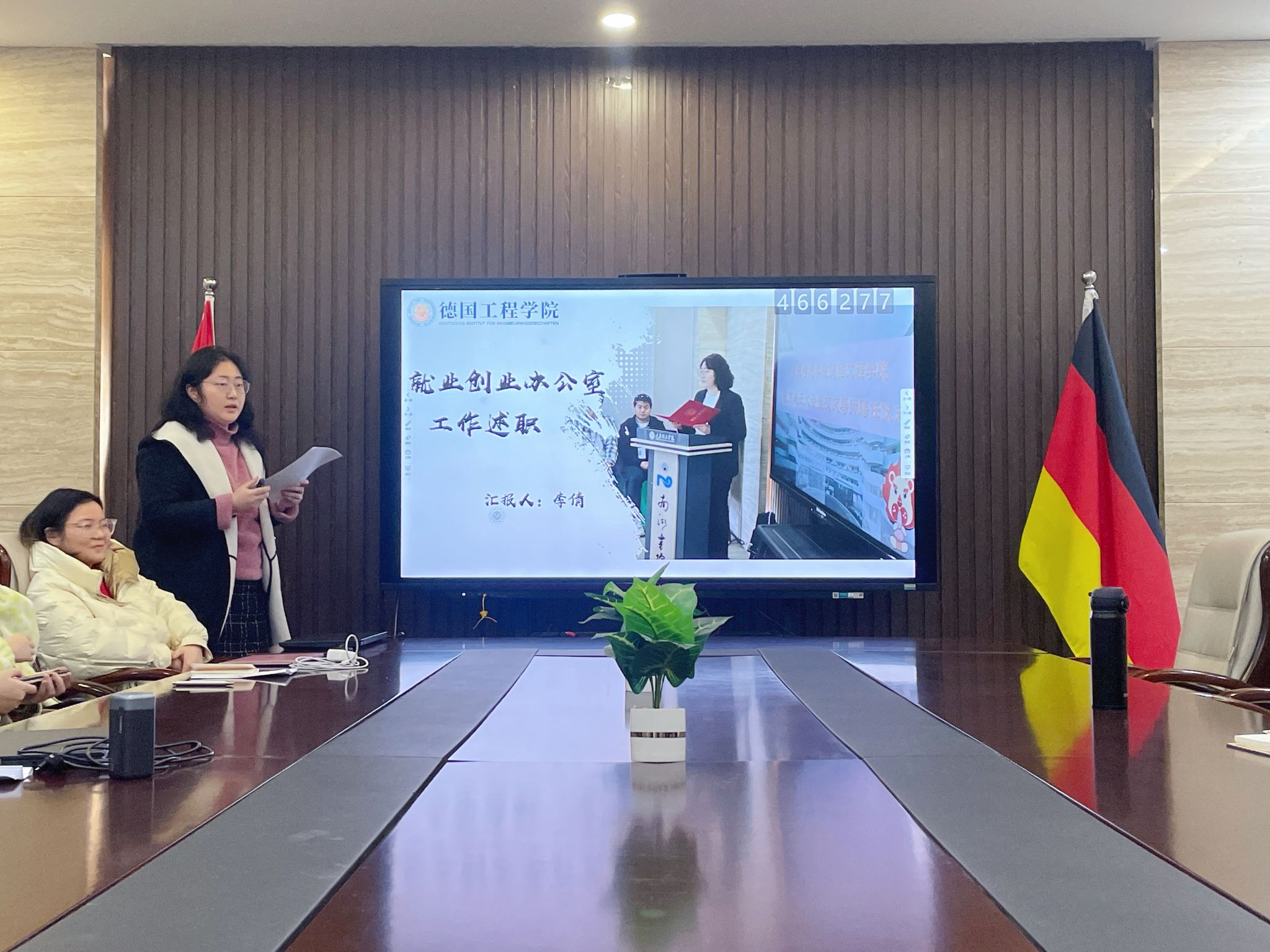 学院就业创业办公室在汇报中,从“稳就业,促创业、系校友”等三个方面进行了总结。学院在就创工作专题会议中,提前研判就业形势,开展分析和动员大会4次、举办院内活动企业高管进课堂9期、邀请校级导师库专家进行就业沙龙7次、创业沙龙4次、邀请校外专家到校进行“职言职语”分享4次、承办校级活动5次,包括:职场咖啡屋、“生涯游乐园”、专场招聘会以及学生层面的完满生涯职规培训、走访7家企业并签订2家校企合作协议,本学期市内走访3家、市外走访常州和上海5家企业、2家长代表、1位校友,认知实习开展2次。在全体教职工的共同努力下,获得2023年就业、考研、高质量先进集体,实现首次大满贯。