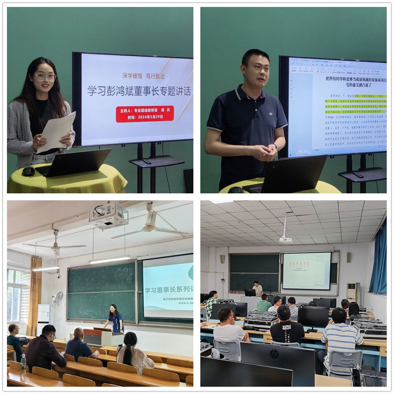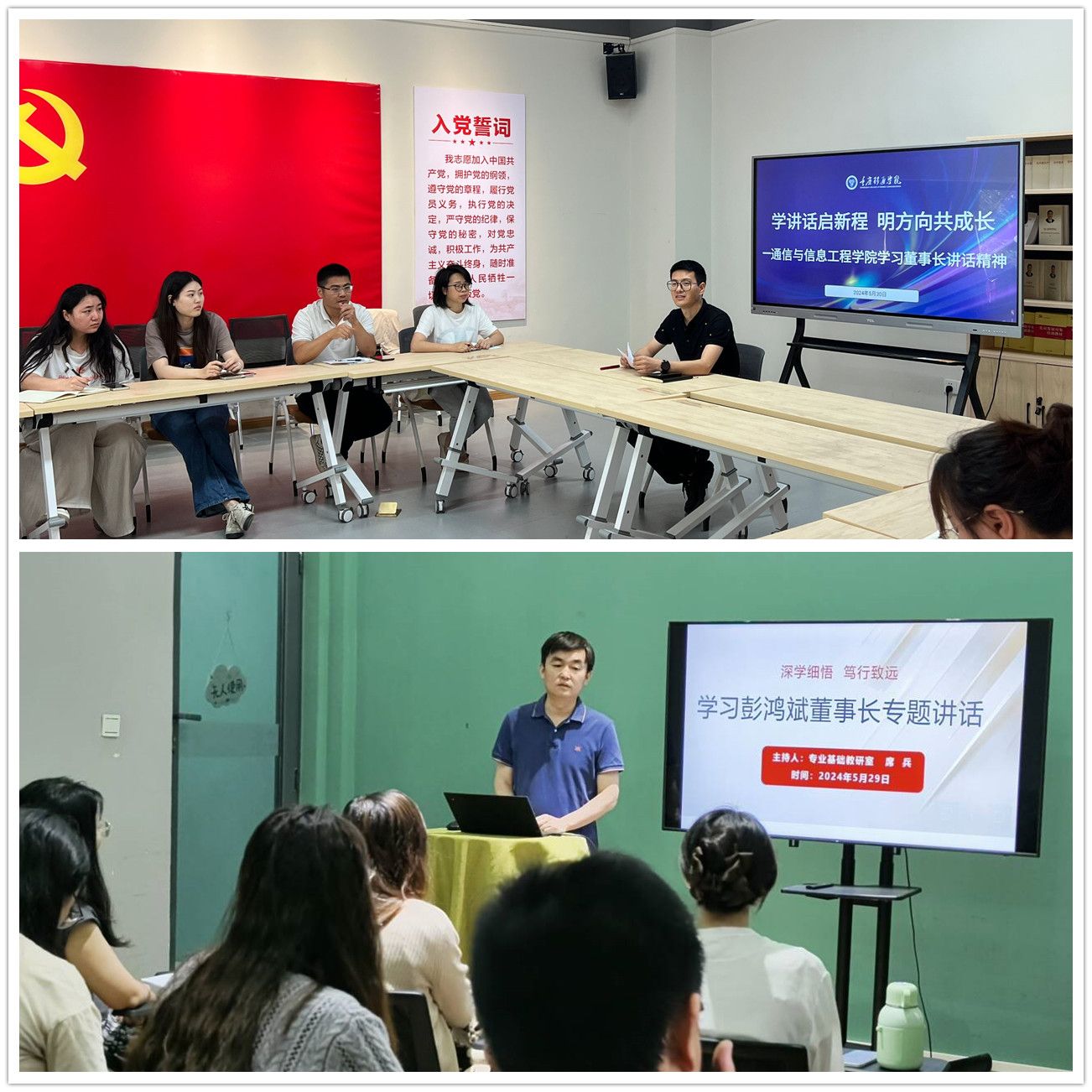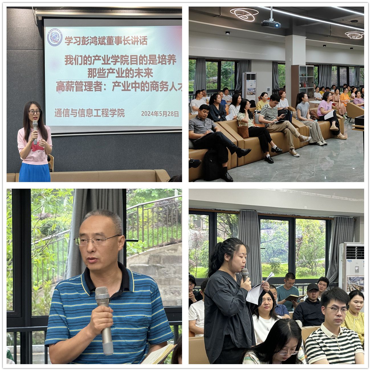 为深入学习和全面贯彻彭鸿斌董事长重要讲话精神,进一步推动教职工深刻理解我校的人才培养模式和办学目标,通信与信息工程学院近日开展了一系列“学习彭鸿斌董事长专题讲话”活动。通过集中学习、专题传达、小组讨论等方式,全院教师认真领悟董事长讲话精神,做到勤学一点、深学一分、多悟一层,用董事长的讲话指导学院工作高质量发展。