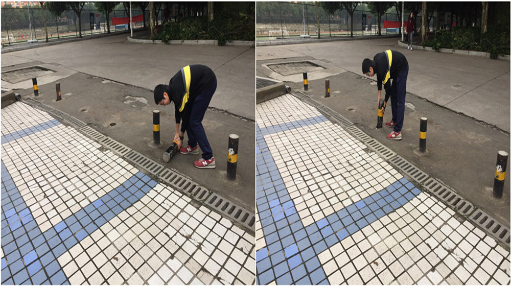 “我的心很小,却装得下你”当同学看到被人毁掉的拦车桩,不顾周围人的反对,毅然把其放在它应在的地方,让它起到相应规范车辆的作用。如果任由拦车桩倒地,那么家园社区,你我共建的精神就没有了存在的必要了。