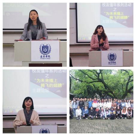 为了增进校友与母校感情,加强校友与母校的联系,培养校友对母校的归属感,为毕业校友及在校学生创造一个交流的平台。2020年10月17日由校友工作办公室主办、远景学院承办的“为未来插上腾飞的翅膀”主题论坛在菩提书院的阶梯教室举办,本次活动邀请到冉银、李辰铭、邱宇作为主讲嘉宾。李辰铭校友、冉银校友为台下各个年级的学弟学妹们分享自己的职业感悟以及各自领域不同的问题。通过本次论坛分享,同学们受益良多,校友们带来的经历和方法建议,想必已经深深地留在了同学们的脑海之中。