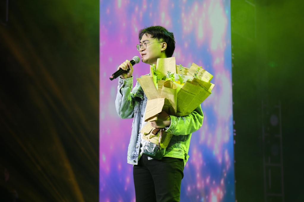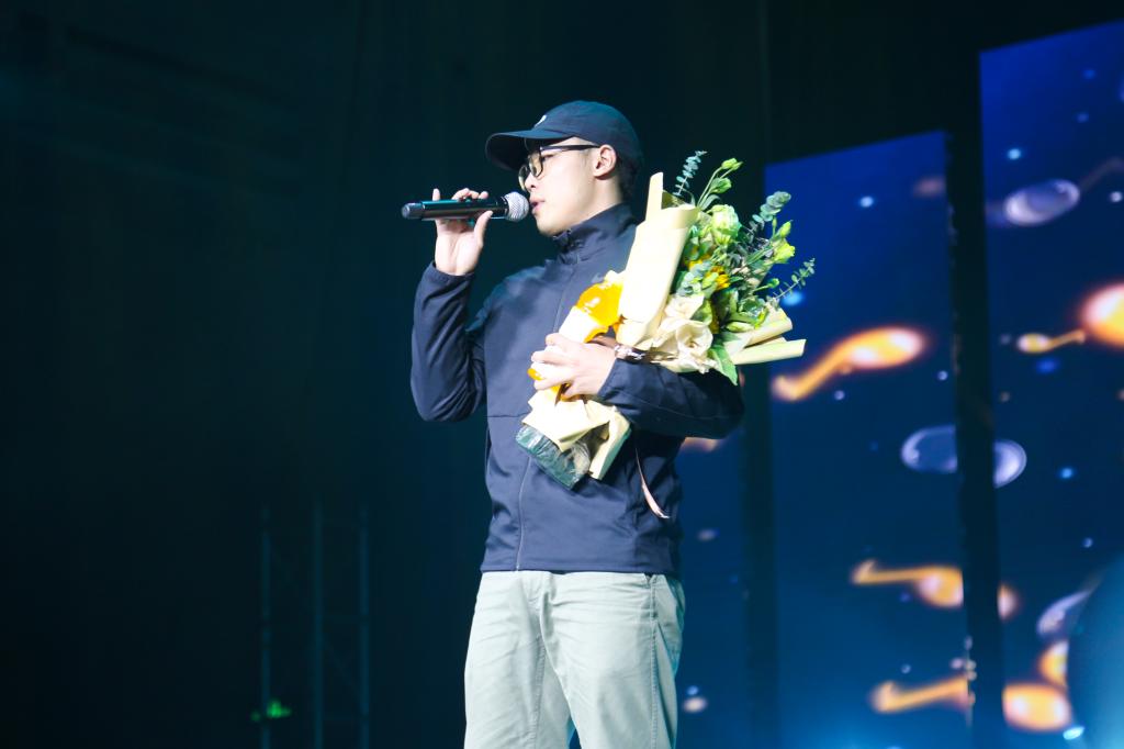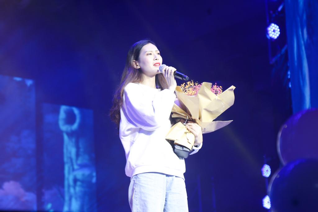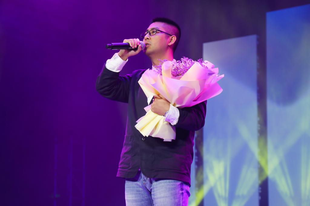 随后,谭柳老师带来了《喜欢你》、刘小路老师来带了《爱》,王焱老师带来了《风往北吹》,三位老师用不同方式诉说着不同的情,歌曲中的愁绪好似随着歌者的声音逸散在空中;表演途中“粉丝”的献花,无意间为舞台增加了些许浪漫,多了一份温情。