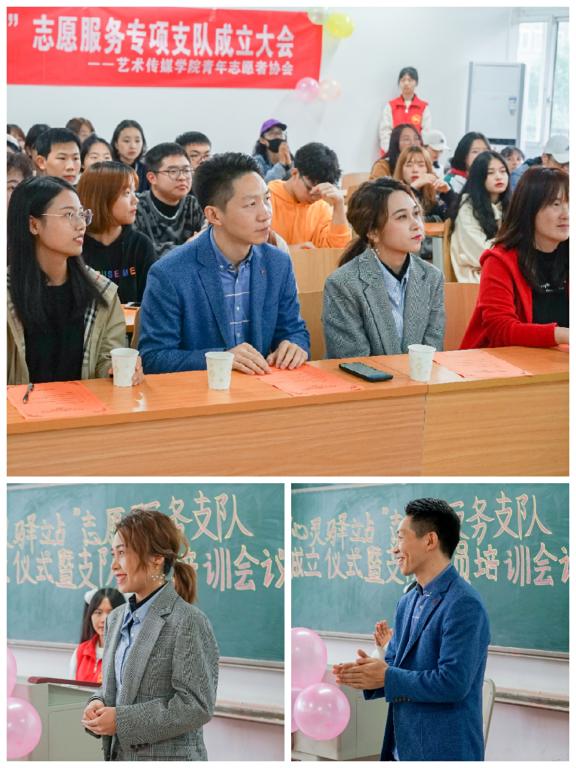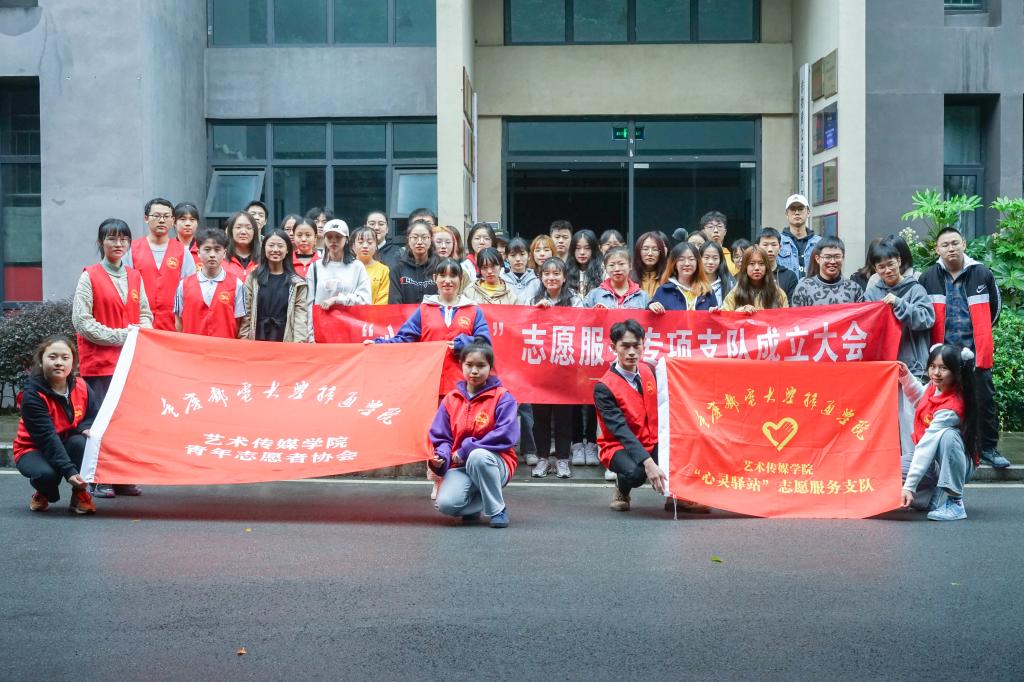 学校心理健康教育与咨询中心主任田雨老师、艺术传媒学院副院长李克伟老师、团总支书记陈婷婷老师、志愿服务指导老师黄小梅老师参加了“心灵驿站”志愿服务支队的成立仪式。同时大数据与软件学院、淬炼商学院青年志愿者协会的干部们前来交流和学习,多方联动,搭建起沟通的桥梁,共同为学校心理健康工作的发展助力。