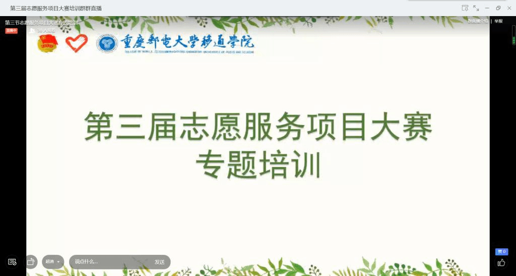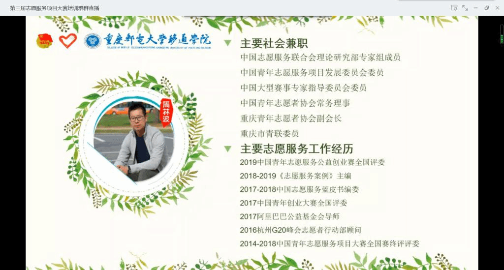 2020年4月20日中午12点半举行了第三届志愿服务项目大赛专题培训,因疫情原因,此次项目培训在线上进行,由周林波老师给参赛选手与花果培训精英班学员开展专项培训及总结。