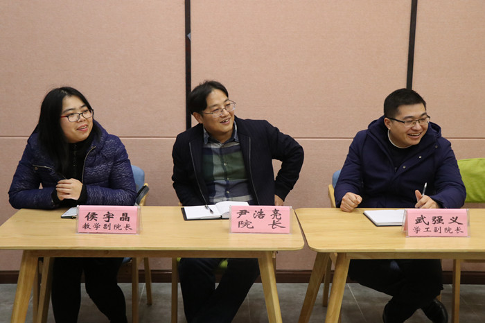 有的同学直接向尹院长建议到:“院长,我们学院活动大多都是体育和娱乐性等方面的活动,我觉得红色爱国主义活动比较少。”尹院长回答到:“你的提议十分的好,我们学院现在正在推行感恩教育,可以先从感恩祖国抓起,虽然以前有一些红色爱国主义为主题的活动,但确实不多,今后我们会主动和思政部联系,举办一些红色爱国主义活动,我们会尽可能动员学院的党支部和团总支一起向校党委或者思政部申请承办一些经典的爱国主义活动。”武副院长在旁补充到:“体育类活动和看似娱乐性的活动还是很有必要的,有可能是我们同学们还没有意识到它的作用,比如:我们学院的体侧合格率暂时还没有达到学校的平均水平,这就看出来体育类活动还是很有必要的。”