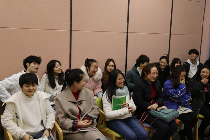 听着院长的回答,很多同学感觉很有帮助,话题也就不停地抛出。接着有同学就国际班的外教口语课提出了自己的意见和看法:口语课对我们学习德国口语很有帮助,能不能增加口语课程?”对此,尹院长回答到:“为了你们更好的学习德国口语,我们可以在下学期尝试安排助教老师上口语课,大家也可以多参加每周三在中德书屋举办的德语角,平时也可以约外教老师或者交换生出去玩或一起参加活动,这都有益于你们的德语口语学习。