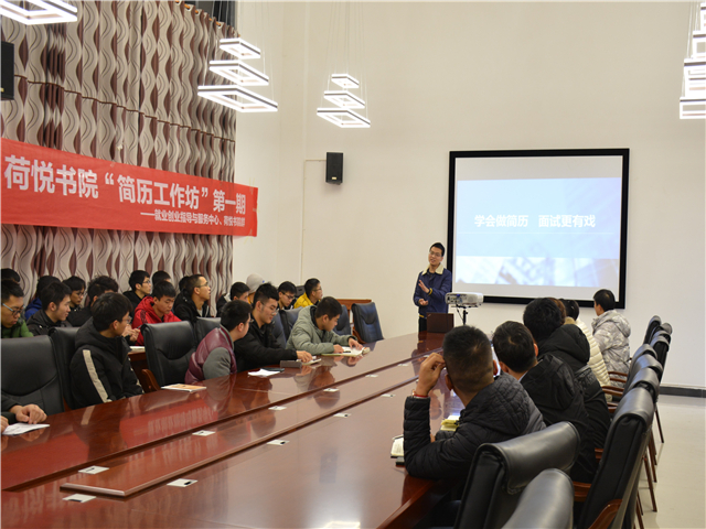 为了让同学们更加深入地了解如何写好简历,提升同学们的就业能力,2019年12月18日12:30,由就业创业指导与服务中心和荷悦书院群举办的“简历工作坊”第一期于梅若书院和松格书院举行。此次活动分为集体宣讲和分组指导两个阶段,活动有幸邀请到校就业创业指导与服务中心杨德龙老师、远景学院郭淼老师莅临,为智能工程学院43名同学作简历一对一指导,校就创中心陈波宇老师、谭露老师、学院刘桃老师、张颖超老师、吴家家老师、蓝剑锋老师、李凤老师参加了此次活动。