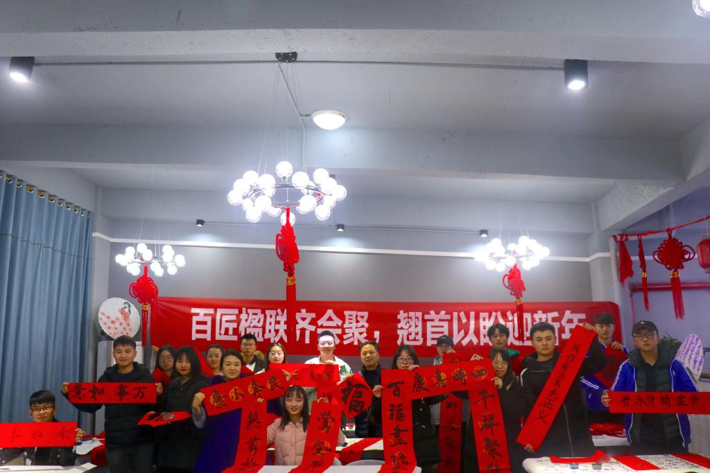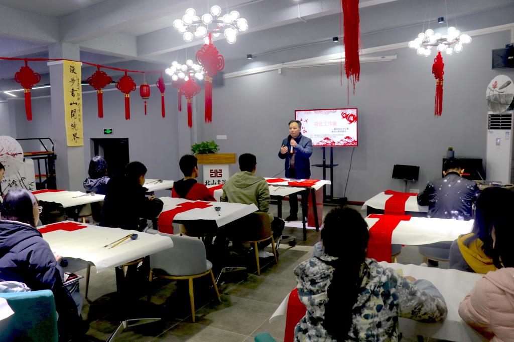 北山书院百匠工作室,于2018年5月成功申报为学校完满教育品牌活动,至今已成功举办32期,主题涉及缤纷彩绘、手工皂制作、非遗剪纸、大国工匠故事、楹联书法传承等方面。旨在以“文化传承”为轴,充分结合合川区楹联教育基地建设、校传统文化学生社团联盟发展、书法研习定期开班等工作,联动内外,整合资源,合力培育学生文化自信,在感受经典魅力、体验非遗文化中挖掘和弘扬匠人精神,培育匠人之心,塑造匠人之魂,辐射人数共达1500余人。12月17日,百匠工作室第32期暨本学期总结会于会客厅顺利举行。此次总结会同合川区楹联学会携手,依托“合川区楹联教育基地”,邀请合川区楹联学会会长兰梦宁老师以年末迎新春为契机,带领同学们领略春节对联的魅力,共计30余人参与。