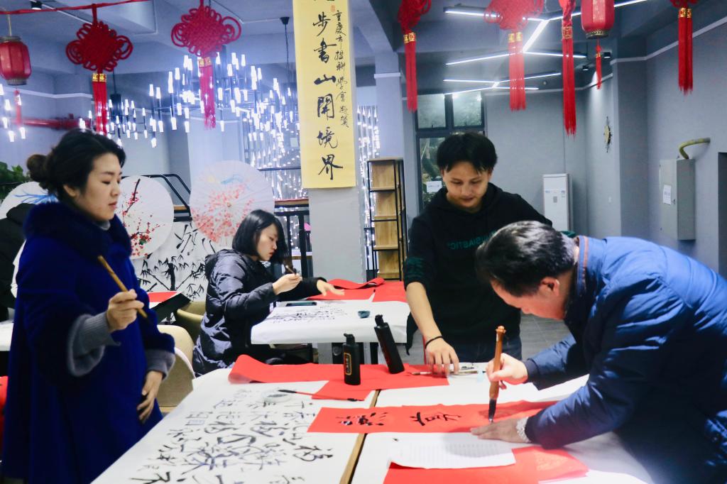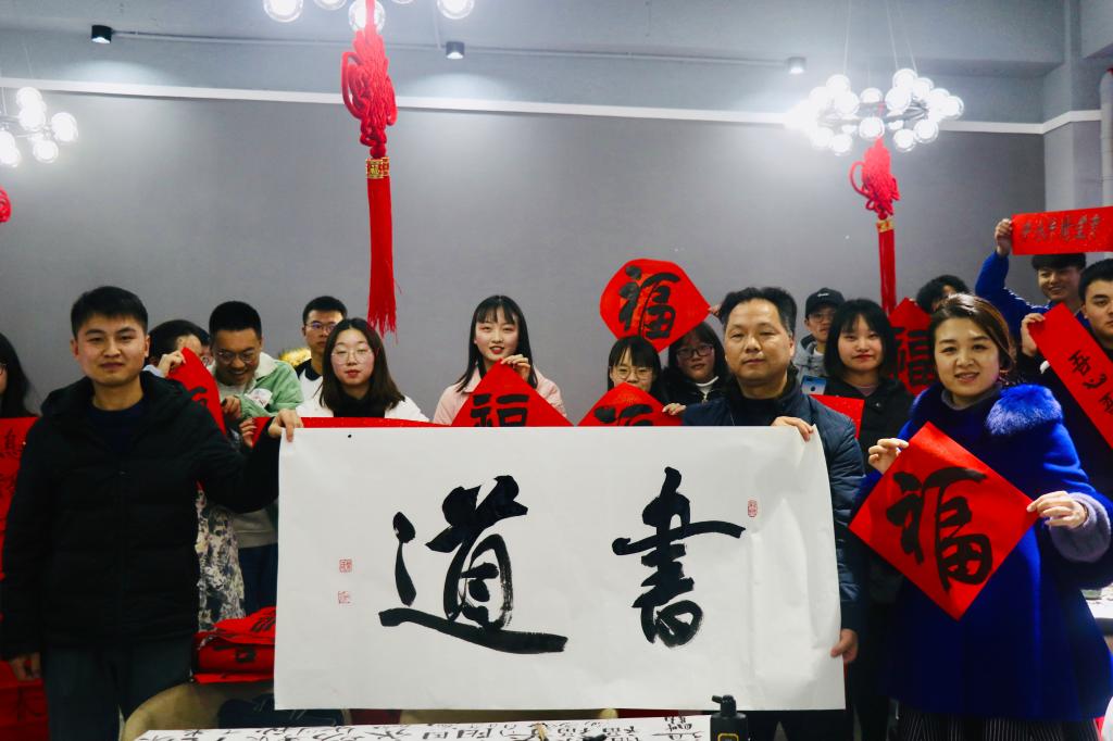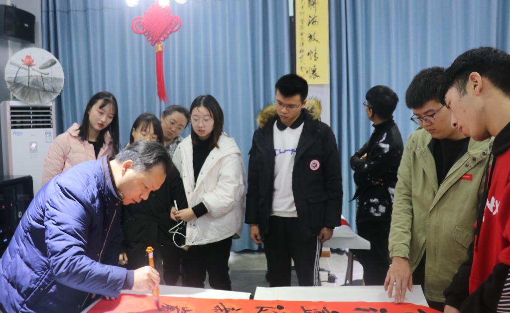 “纸上得来终觉浅,绝知此事要躬行。”春联故事分享之余,兰老师带领同学们现场创作了几幅春联,并亲自示范春联写法,指导同学们书写春联、对联的技巧。兰老师创作的“绿竹别其三分景,红梅正报万家春”,体现了年关将近万象更新的喜悦和脱俗,从春联中散发出来的“年味”,更加浓厚。同学们自行创作的春联,涵盖生活、学习和工作各方面,表达了在新的一年学业有成、幸福快乐的美好期盼和愿望,这便是对联文化赋予人们的精神内涵与寄托。
