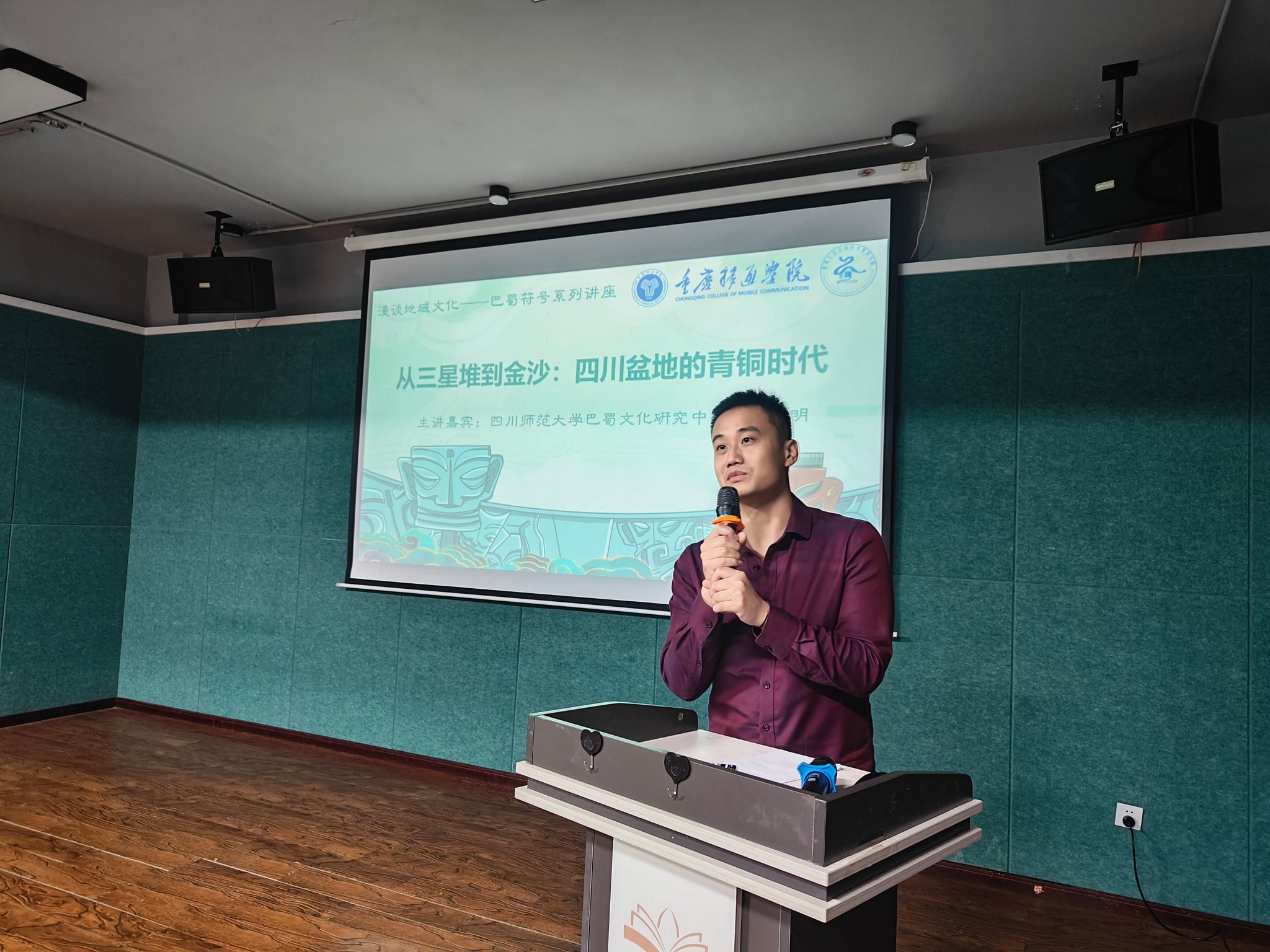 为促进学科交流,培养学生跨学科思维,3月25日地域文化与城市发展研究院在爱莲书院多功能影音室开展“漫谈地域文化——巴蜀符号”系列讲座。本次讲座由研究院罗晓霞老师周杨老师共同主持,有幸邀请到四川师范大学巴蜀文化研究中心吴超明副教授,为同学们带来《从三星堆到金沙:四川盆地的青铜时代》。另外,通识教学部向小雪老师、远景学院赵丹老师一同参与了本次活动。