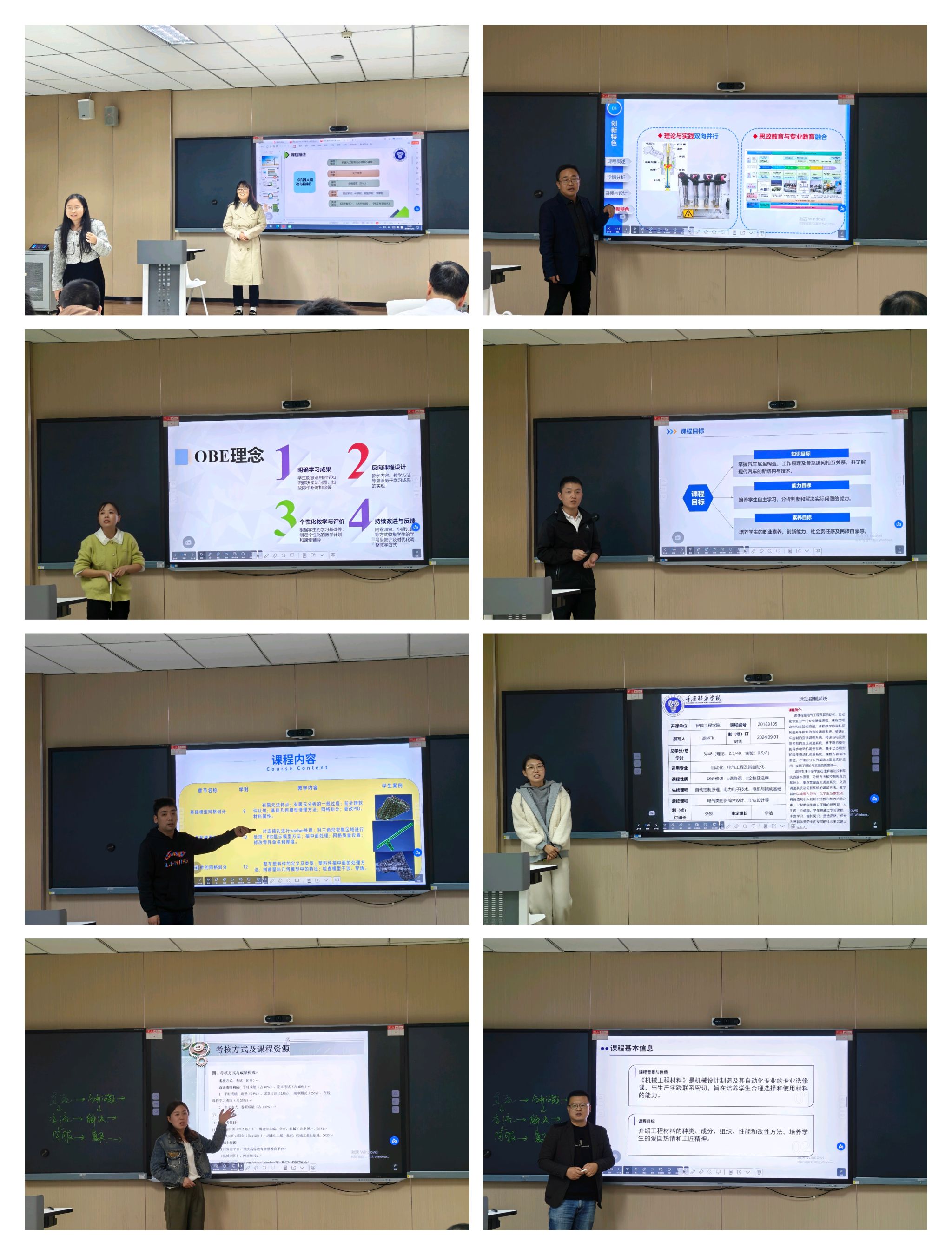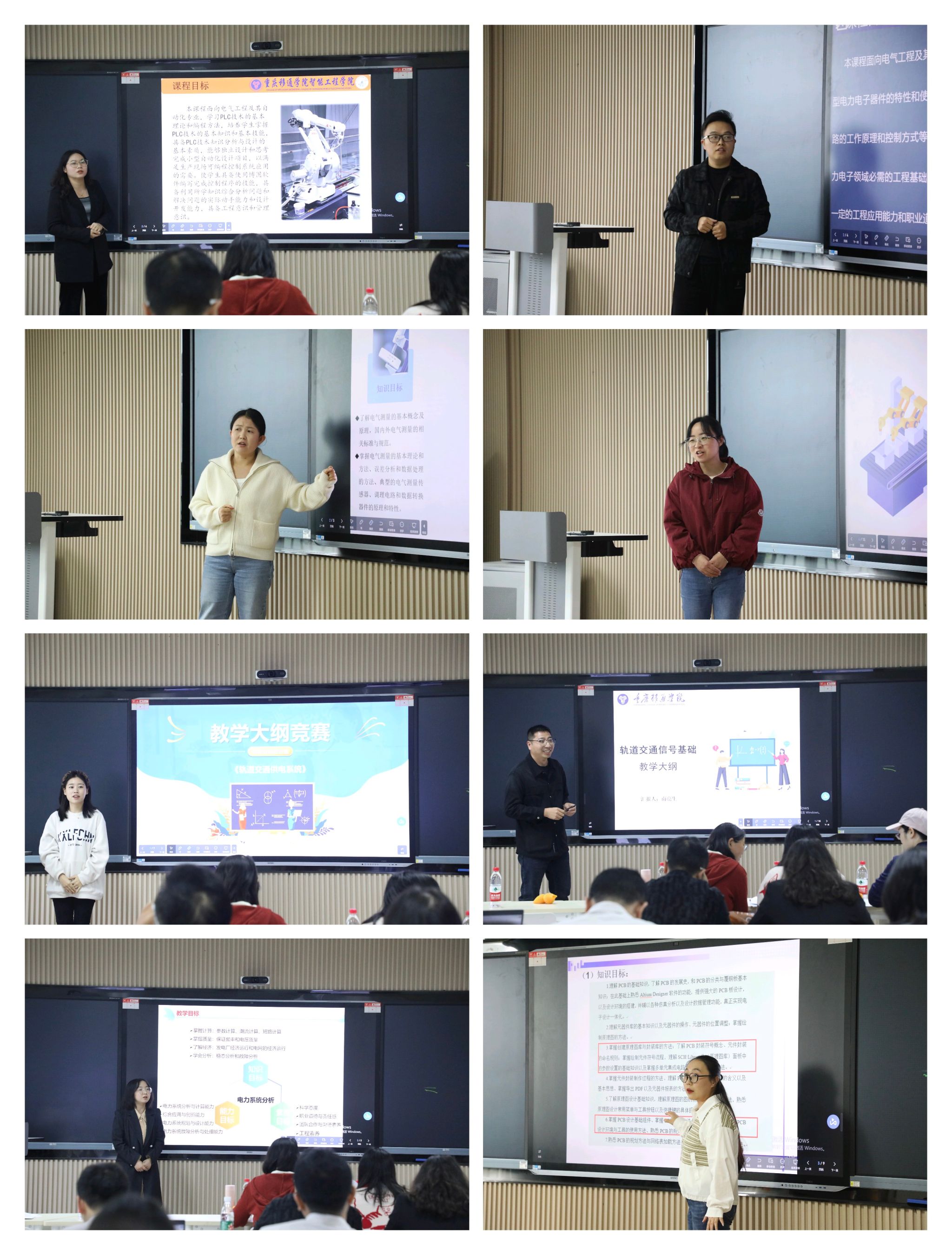 进入决赛的评比的课程涵盖了机器人驱动控制、汽车电子控制技术、运动控制系统、自动控制、电力系统分析、电气控制与PLC技术等各类专业核心课程。比赛过程中,各位参赛教师精心准备,从课程基本信息、课程目标、教学内容和组织、考核方式和成绩构成、课程资源等多个维度,全面展示了各自教学大纲的创新点与亮点。有的注重理论与实践双向并行,强调学生实践能力的培养;有的突出OBE理念落实,明确学习成果,推进个性化教学与评价,持续改进与反馈;有的则聚焦于跨学科融合,探索跨学科教学新模式;有的着重突出思政教育与专业教育融合,培养学生的奉献精神和团结意识;还有的重点介绍通过引入现代信息技术手段,力求打造更加生动、高效的教学环境。