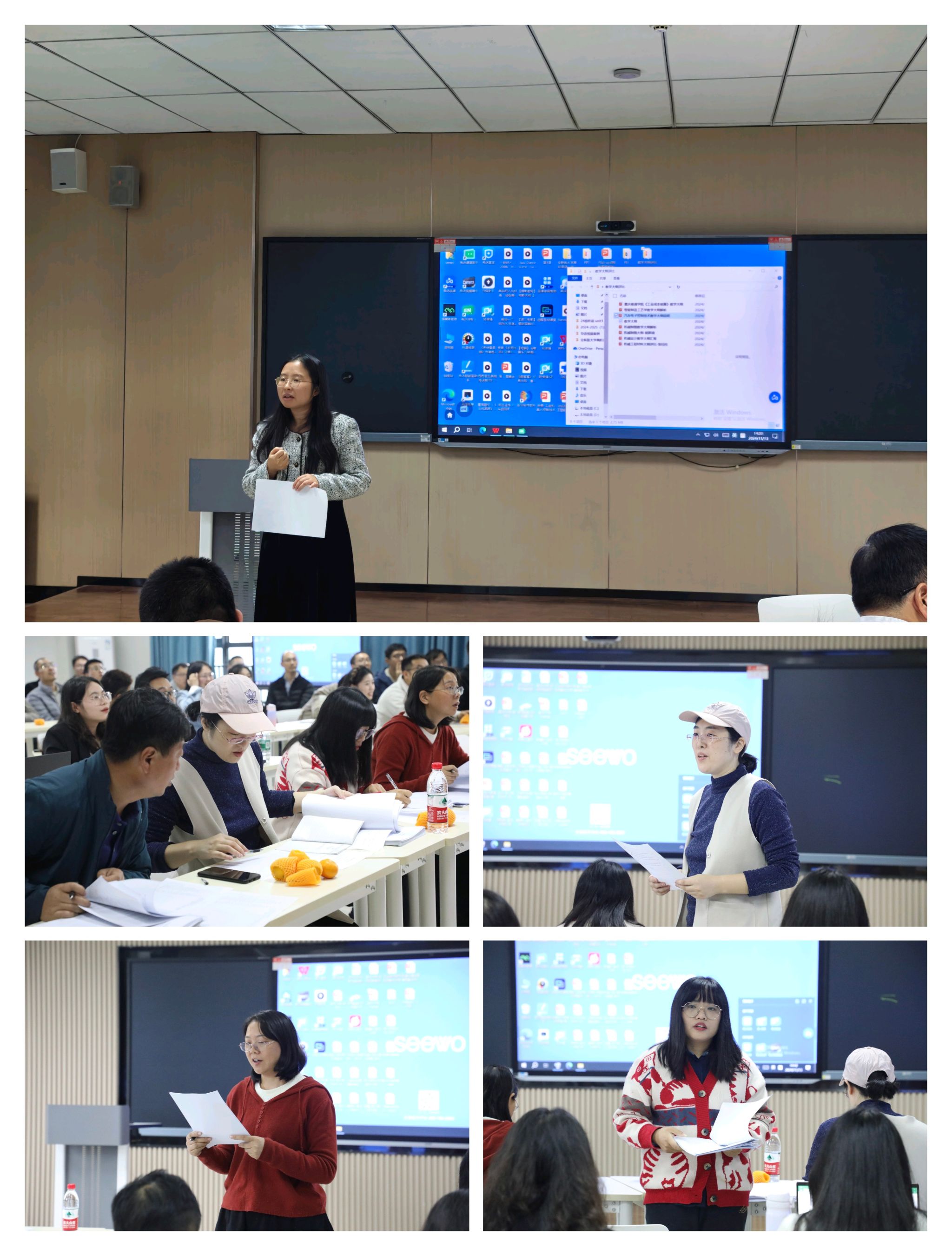 在迎评促建的关键时期,教学大纲作为课程建设的核心指导文件,其质量直接关系到教育教学质量和学生学习成效。为了进一步提升教学大纲的科学性、规范性和实用性,智能工程学院举办2024年优秀教学大纲评比大赛,于11月13日下午两点在9112、9113开展决赛评比。本次活动由智能工程学院教学副院长李洁主持,特邀马克思主义学院中国近现代史纲要教研室主任李阳、数理教学部张媛、通信与信息工程学院胡珺珺及我院各教研室主任、专业负责人、教学团队负责人担任评委,智能工程学院全体专任教师参与本次评选活动。