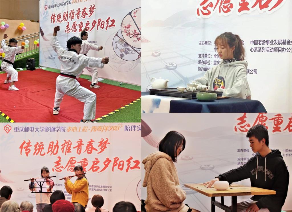 此次活动以“传统助推青春梦,志愿重启夕阳红”为主题,我校青年志愿者联合会与传统文化社团联盟的志愿者们用优秀传统文化、创意和激情践行孝、感悟孝、传递孝,为老人们送去关爱和温暖,让“陪伴”的力量更加深入人心。