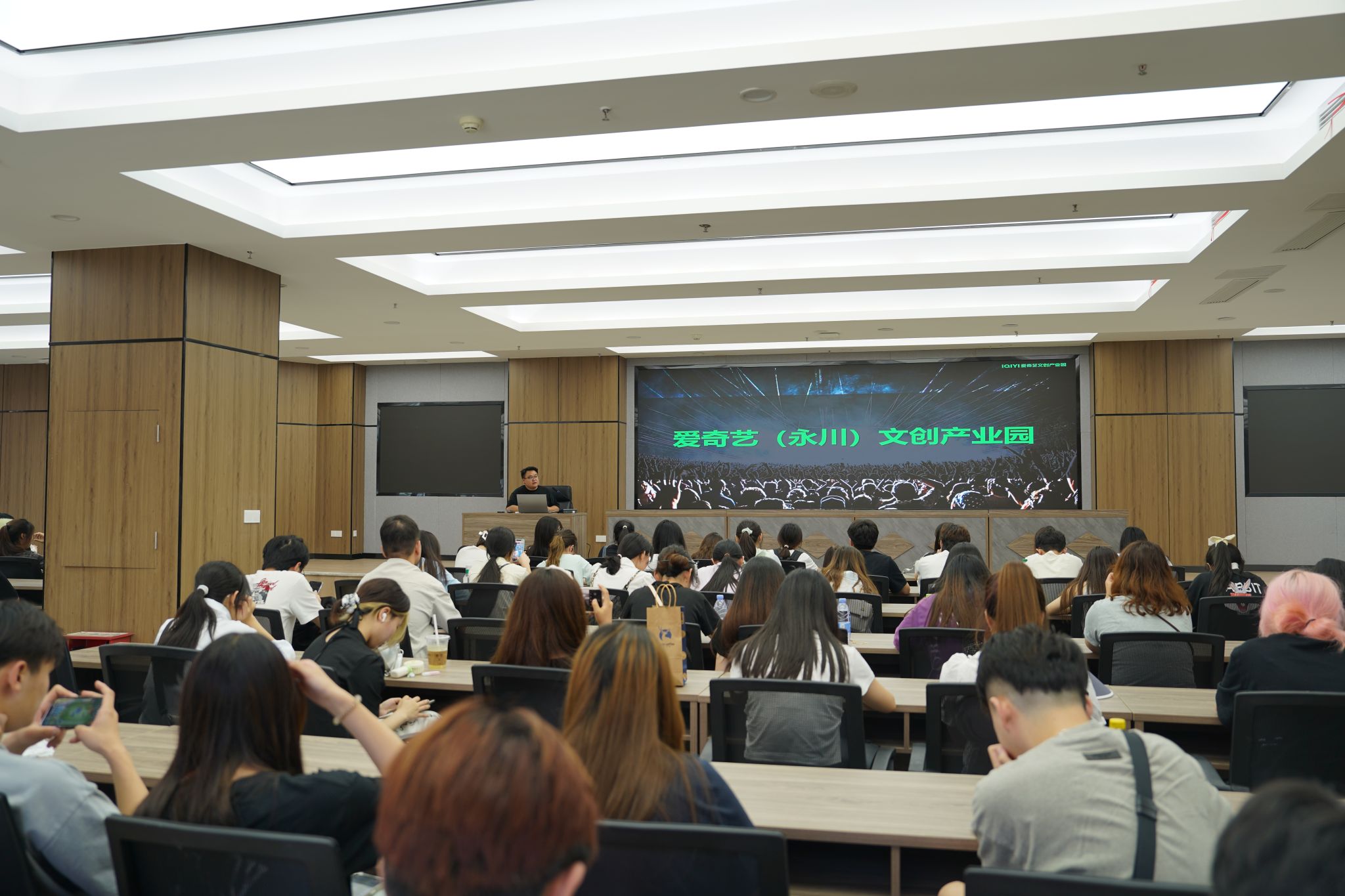 认知实习的最后环节,由重庆可酷数字科技有限公司、重庆琼秀乐川科技服务有限公司和重庆乐程创文科技服务有限公司、完美世界(重庆)互动科技有限公司以及重庆彩色铅笔动漫设计有限责任公司为同学们进行了企业宣讲。三家公司均表示愿意为学生们提供岗前培训的机会,帮助他们将产、学、研相结合,实现学有所获、学有所用。