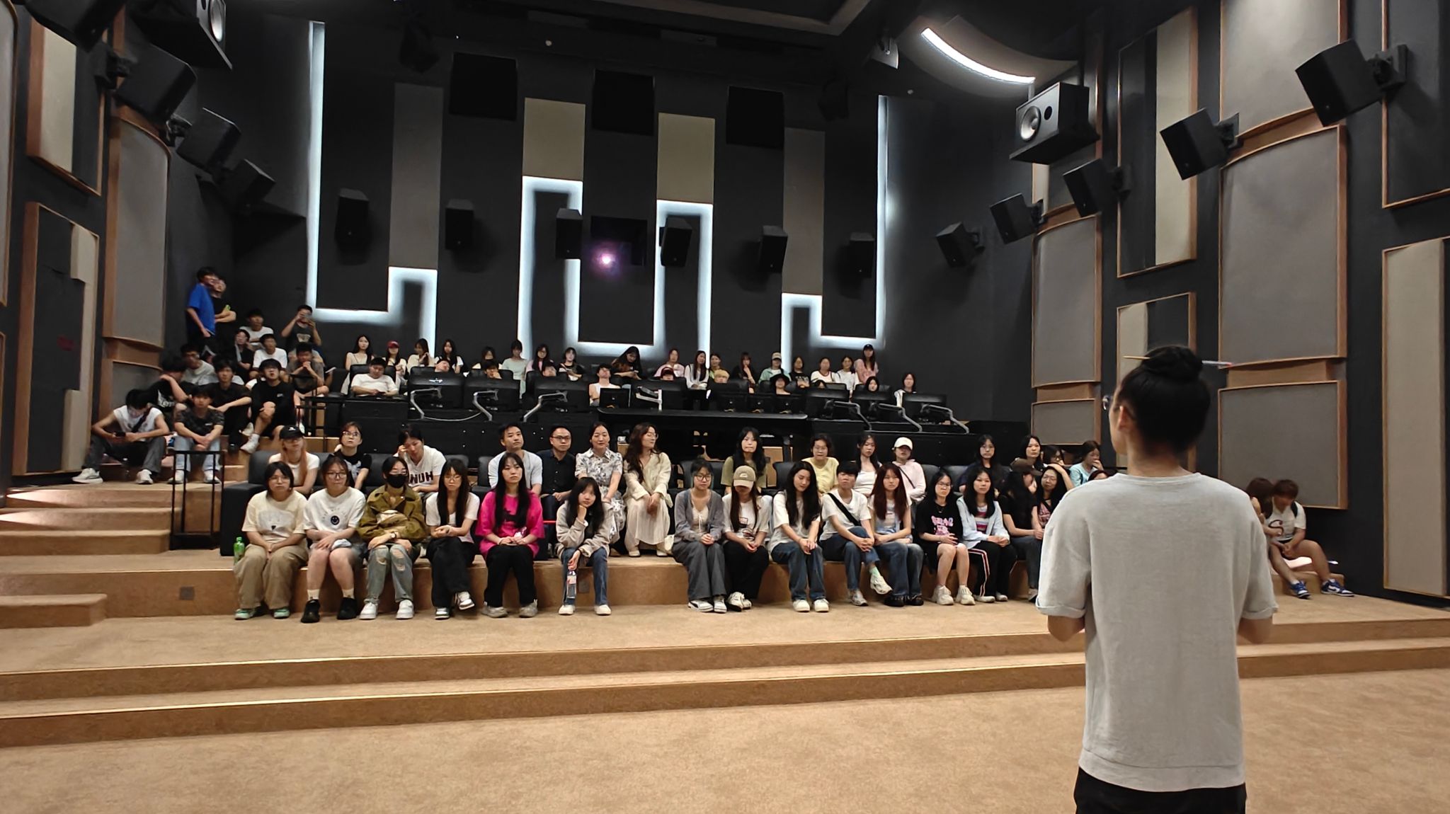 在认知实习过程中,学生们首先了解了云谷·大数据产业园的整体工作范畴和其在数据分析及区位上的独特优势。随后,大家进入各个工作间进行参观,亲身体验了不同岗位的日常工作——在杜比音效厅,学生们体验到了三维立体音效带来的震撼感受,近距离了解了音效师的工作内容及其重要性;在爱奇艺影视工作间,大家体验了影视工作人员的日常工作流程,深入了解了影视作品从策划到制作的全过程;在完美世界(重庆)互动科技有限公司,同学们得到了关于游戏制作全过程的详细解答,认识到了游戏制作的复杂性和创造性。