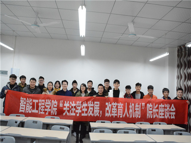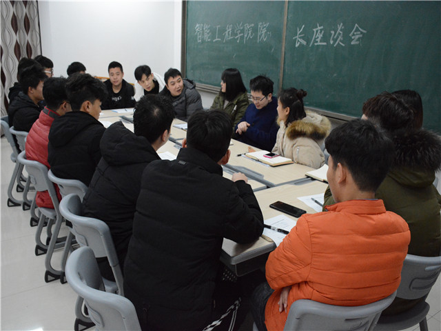 为了帮同学们解决遇到的问题,更好的完善自己,学到更多的东西,拉近与老师的距离。智能工程学院于12月13日晚上七点在竹逸B101举办了“关注学生发展,改革育人机制”智能工程学院院长座谈会。智能工程学院副院长党晓圆老师,机械工程教研室主任田于财老师,智能工程学院辅导员郭菲老师和李凤老师莅临会议。
