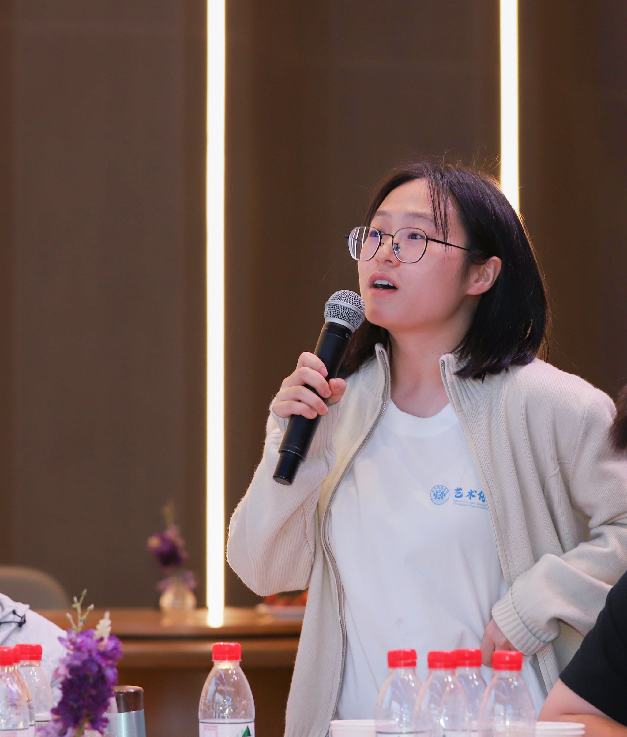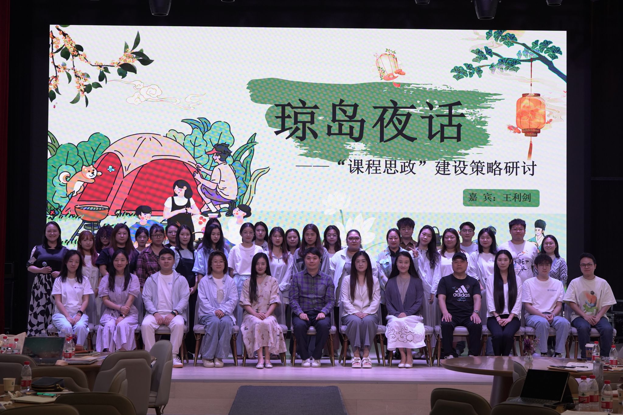 四川音乐学院传媒学院副院长王利剑教授则带来了《“五育融合 ”视域下的 高校艺术教育品牌构建路径》和《新时代背景下艺术类课程思政的教学探索与实 践》两场精彩纷呈的讲座。深入剖析了“五育 ”融合的时代背景与重要意义,强 调了在全面育人理念下,艺术教育不应孤立存在,而应与其他教育领域相互渗透、 相互促进。同时进一步探讨了如何将思想政治教育有机融入艺术类课程之中,实 现知识传授与价值引领的统一。他提出,艺术类课程思政不应是简单的“贴标签 ”, 而应深入挖掘艺术作品背后的文化价值、社会意义及人文精神,通过案例分析、 情景模拟、项目实践等多种教学方法,激发学生的爱国情怀、社会责任感和文化 自信。教师黄慧就新时代背景下艺术类课程思政怎样做,提出了自己的观点并与 王教授进行了深入的探讨;教师邹伽楠就艺术课程中如何平衡专业教育与思政教 育的关系提出了疑问并得到了王教授细致全面的解答。