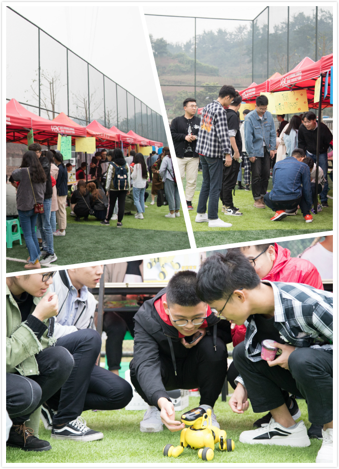 在动感十足的音乐声中,创意科技文化Show火爆开启。开场一段激情澎湃的摇滚乐曲,悠扬的歌声划过每位观众的心弦,带大家进入别样的世界。智能机器人、大疆无人机、小米平衡车、赛格威平衡轮等新颖独特的高科技展品陈列在球场的展台,与舞台上明朗的旋律构成一条靓丽的风景线。工作人员耐心讲解科技原理的同时,同学们积极参与到互动体验中。正是这动感旋律激励着同学们不断创新、探索科技,在高速发展的信息时代下勇于拼搏,体会科技带来的美好生活。