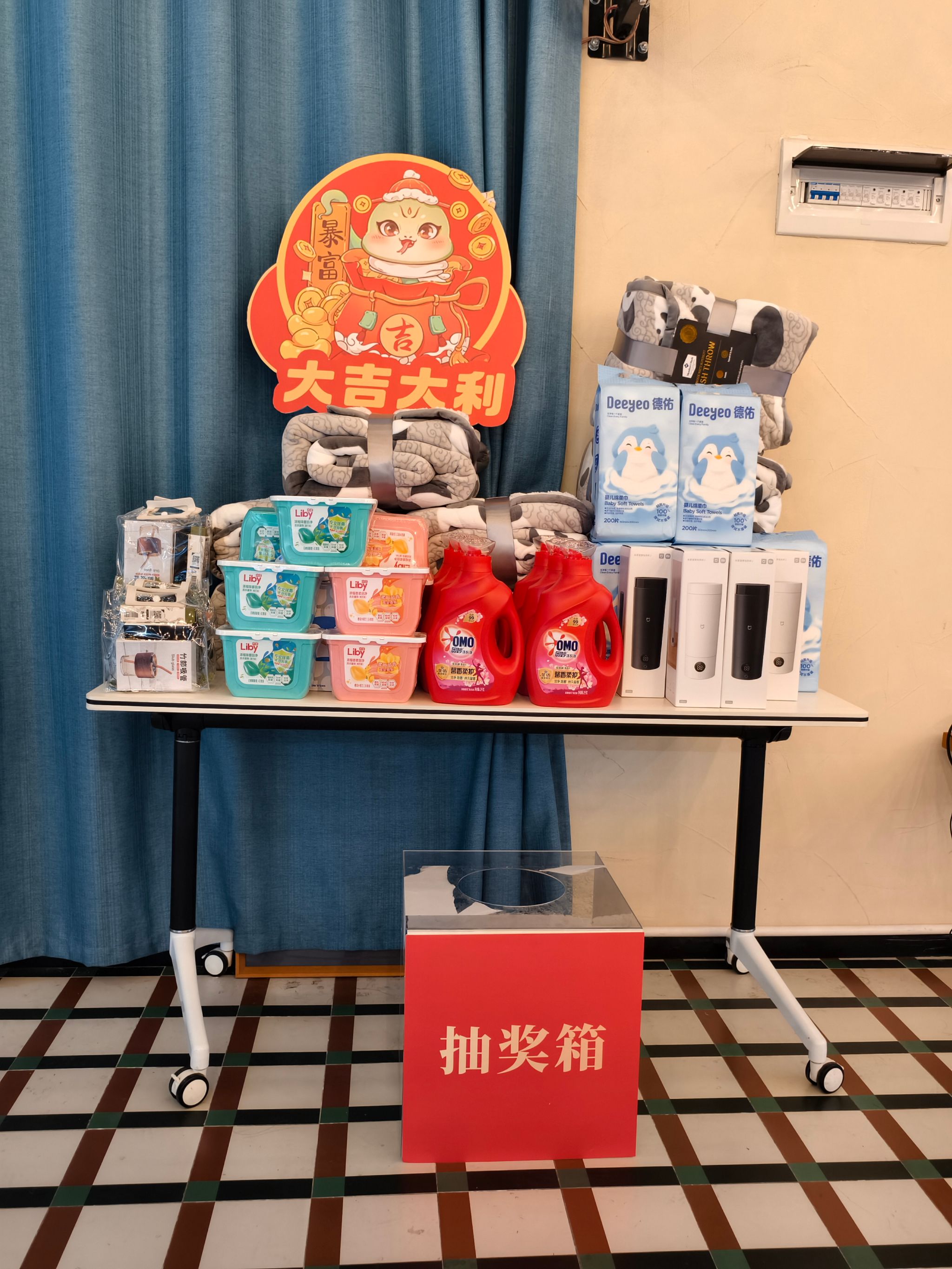 游戏结束后学生处处长陈帅为获胜团队颁发奖品以及抽取2025年的“锦鲤”,现场氛围推向了又一个新的高潮,欢呼声、掌声再次响起,大家都沉浸在这欢快的氛围之中。