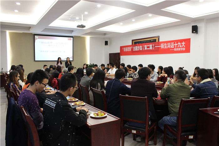 《毛泽东思想和中国特色社会主义理论体系概论》教学小组采用师生研讨式教学模式将十九大精神融入课程体系 。开学伊始,教研组长邹建平老师就组织全体老师集体学习和研究党的十九大报告和习近平新时代中国特色社会主义思想,把十九大精神和习近平新时代中国特色社会主义思想融入课堂教学和实践教学中,做到习近平新时代中国特色社会主义思想进教案、进课件、进授课计划,做到理论研讨与教学创新同步进行。同时,思政教学部积极组织优秀学生代表开展学术沙龙,师生共话十九大,把“新时代”、“ 主要矛盾变化”等最新内容纳入课堂讲授和课堂讨论环节,加深学生对十九大精神的理解。两会结束后,思政教学部就成立了习近平新时代中国特色社会主义思想研习社,由毕毓璟老师带队,挑选优秀学生代表进入研习社,组织骨干教师对研习社的学生进行导师式传帮带研习活动,指导学生学习和研究十九大文献和习近平新时代中国特色社会主义思想,给优秀学生以全新的学习模式。