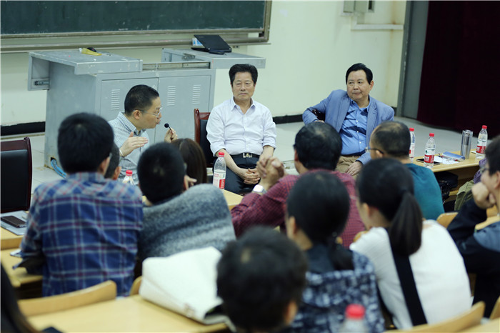 在蔡锴工程师的专题讲座结束后,通信与信息工程全体教师在3101召开了“通信工程专业培养方案研讨会”,会议由毛期俭教授主持,张德民院长在百忙之中专门抽出宝贵时间莅临指导。大家就通信工程专业培养方案的优化展开了研讨,蔡锴工程师针对目前通信行业的发展趋势和行业岗位的人才需求,给通信工程专业的课程设置提出了宝贵而又中肯的意见,对我们紧跟行业步伐优化培养方案具有重要意义。