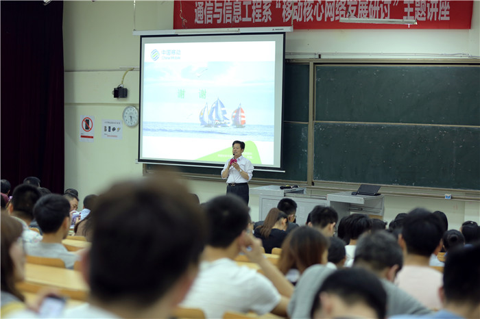 在蔡工程师做精彩报告的过程中,老师和同学们听得异常投入。通过这次专题讲座,使大家更加清楚地了解了移动通信学科的一些前沿动态,为以后的学习和教学提供了极大的帮助。
