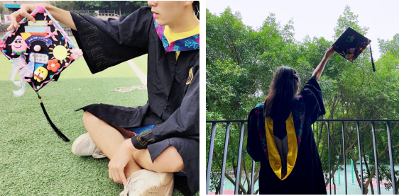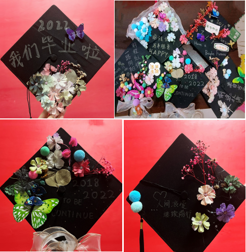 来自外国语学院的张瑞泽说“我从小就特别爱做手工,通过自己的双手能够为自己的毕业帽增添一抹绚丽的色彩,这让我感到很是兴奋”。“能够带上自己设计的毕业帽参加学校的毕业典礼,这一定会成为现场所有人的焦点,也将会成为我最深刻的回忆。”通信与信息工程学院张之林同学兴奋的表示将戴着帽子参加毕业典礼。