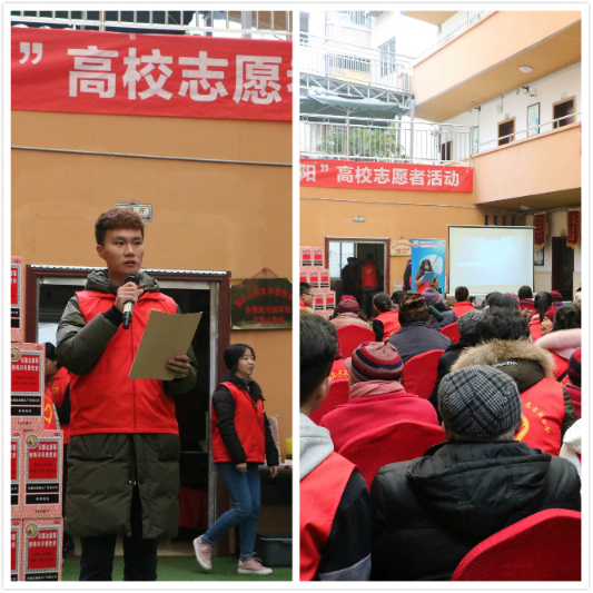 一段青春伴夕阳宣传视频拉开了本次康乐之行的序幕。志愿者代表史沛惠和协办单位代表发共同发出倡议:“同学们关爱老人,就是关爱未来的自己,社会风气的改善需要每一个人的付出,对父母对长辈多一些理解和耐心。用力所能及的行动参与到助老爱老行动中,让这个社会多一份温暖。”