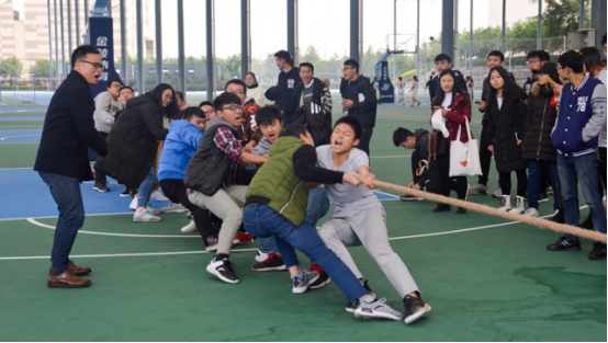 拔河虽没有辩论赛的剑拔弩张,没有篮球赛的热血淋漓,却别有一番滋味。一声声的加油,不仅仅传达着“亲友团”的热情祝愿,更是彰显了参赛人员的拼搏与激情。同学们热烈的掌声,“亲友团”声嘶力竭的呐喊声,助长了他们的焰气。他们双手像一把把铁钳子似的,紧紧地握住麻绳,迈开弓箭步,作好了准备。在裁判吹口哨的瞬间,就开始了较量,在胜负难分的时刻,大家毫不退却,咬紧牙关,坚持到底,一句“一二,一二”也能发挥出巨大的能量。