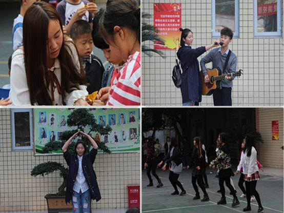 随着时间的推移,本次活动渐渐接近尾声,可小朋友们依旧很有热情,欢声笑语,其乐融融。表演结束后,全体志愿者和小朋友一起合影留念,看着一张张笑脸出现在相机里,志愿者们也露出了会心的微笑。在挥手告别那一刻,小朋友是多么的不舍,他们多么希望这些大哥哥大姐姐能留下来陪伴他们,与他们一同玩耍。其中一位叫周钰成的小朋友拿着一张纸条跑过来给了一个志愿者,上面写到“哥哥,天天开心”并画了一个笑脸。志愿者就是这样,也许你只是付出自己力所能及的,但孩子们,会亲倾其所有的回报你。