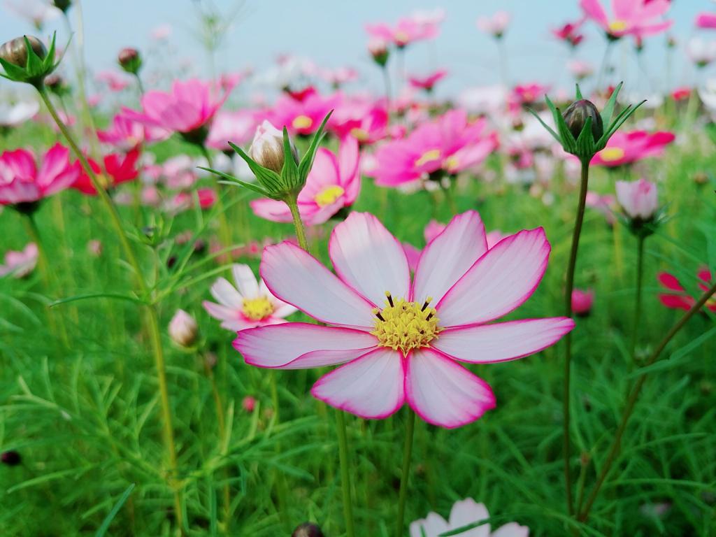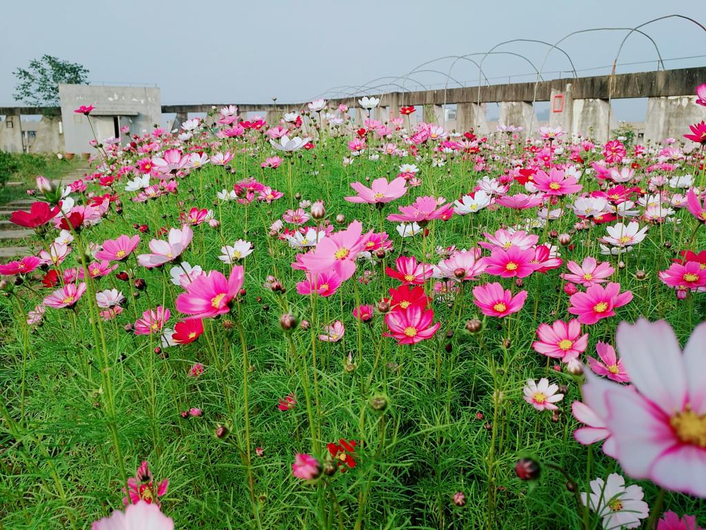 她的杆很细花瓣也很小,看似弱不禁风,可风越狂,她的身体就越挺;雨越打,她的叶子越翠;太阳越暴晒,她开的愈灿烂。随着季节的变换,她的颜色也会随之变化。或许这就是格桑花的神奇之处。我们种下一片花海,等着你的到来,而来到了花卉基地你就会置身于世外桃源。鸟鸣空悠,视野广阔,盛开的花朵争奇斗艳,红色、粉色、白色、紫色的花朵混在一起绘成一幅最美丽的图画。