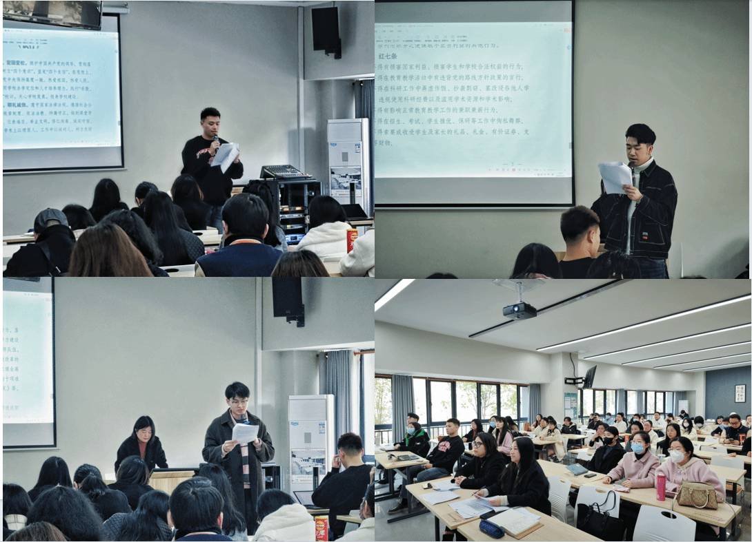为加强教师师德师风建设、提升教师职业道德与素养,3月13日,德国工程学院在南湖书院智慧教室举办了一场别开生面的全体教师师德师风活动。活动分为观看教育部公布的师德失范典型案例警示片以及重温重庆移通学院师德师风相关资料两个部分。