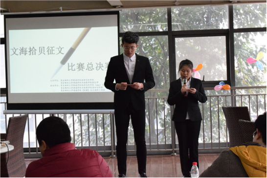 12月15日,我们在中德书屋迎来了大家期待已久“文海拾贝”征文比赛决赛,到场的嘉宾有团总支书记祝玮老师、指导老师刑斐、创意写作中心院长助理李孟老师、九月杂志社指导老师甄明哲、科任老师万江。在万分期待中,决赛拉开了序幕。