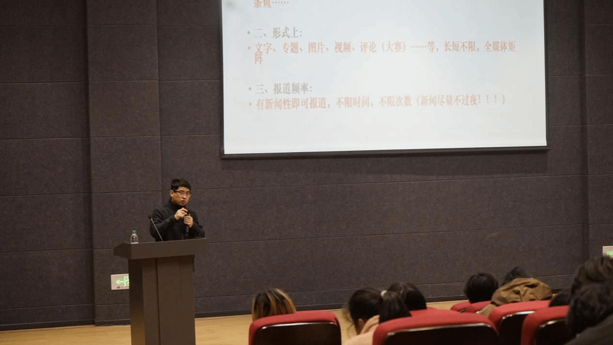李志峰从“新时期的媒体与党报”“校园日常新闻的挖掘”“校园日常新闻稿的采写技巧”以及“新闻观的塑造”四个方面开展讲座培训。