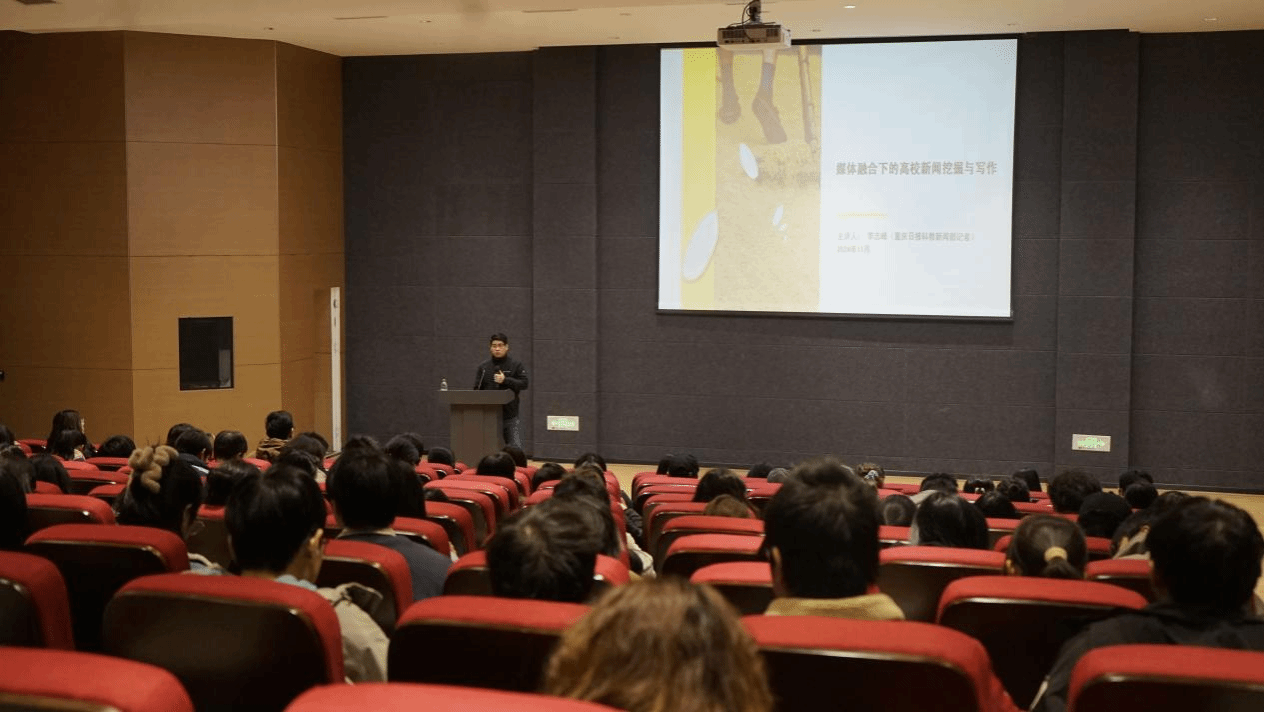 为进一步提升全校师生统筹思维、品牌营销、多元技能等核心素养,11月28日下午,我校宣传新闻中心联合别都书院“V&S”品宣菁英孵化中心和南湖书院银河空间工作室举办品牌宣传推广大咖讲座。此次讲座特邀重庆日报资深记者李志峰到校,于六度空间105℃学术报告厅为合川校区师生进行新闻稿件撰写技能培训。