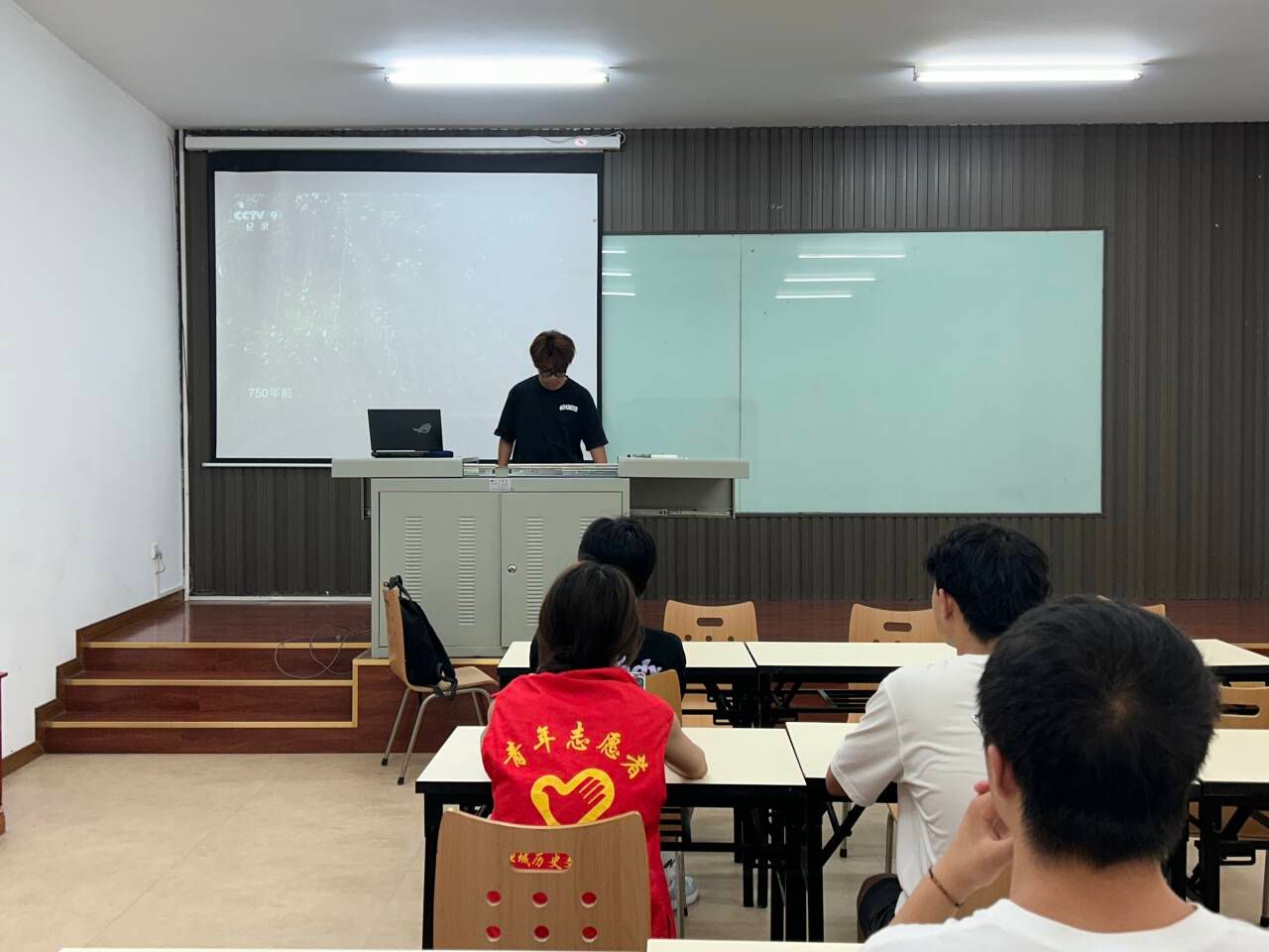 随后,在同学们对钓鱼城有基本了解后,学术研究部部长周治刚通过多媒体播放纪录片《钓鱼城--天神折鞭之地》。纪录片《钓鱼城--天神折鞭之地》深入钓鱼城的历史与当下,将这座城的前世今生系统全面地挖掘出来,彰显出漫漫历史文化长河中战争史的重要地位。