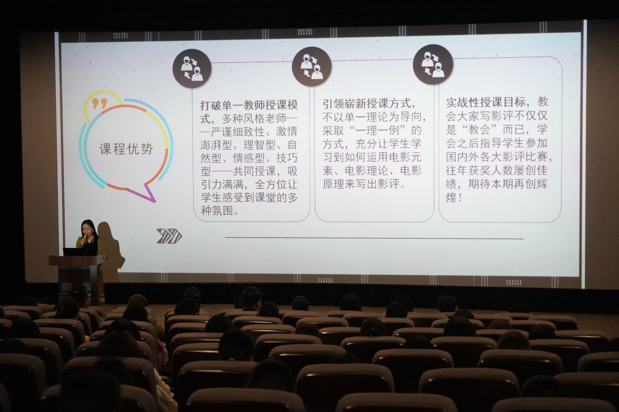 活动伊始,主持人吴安诺老师向同学们介绍了本次“影想力”影评训练营的构成及课程安排。训练营将持续至学期末,涵盖了电影分析、写作技巧、评论要求等多个方面。学员们将受到来自诸多专业电影影评人的深入培训,学习最全面的知识技能。训练营不仅局限于课堂教学,还将组织影片观摩与写作训练,为学员提供多种多样的写作机会。谈及主旨,吴老师说:“我们一直相信电影的力量。它将我们与世界连接,而我们的影评写作恰恰是连接电影与观众的桥梁。我们鼓励每位学员用心写作,将他们独特的思考分享给观众。”