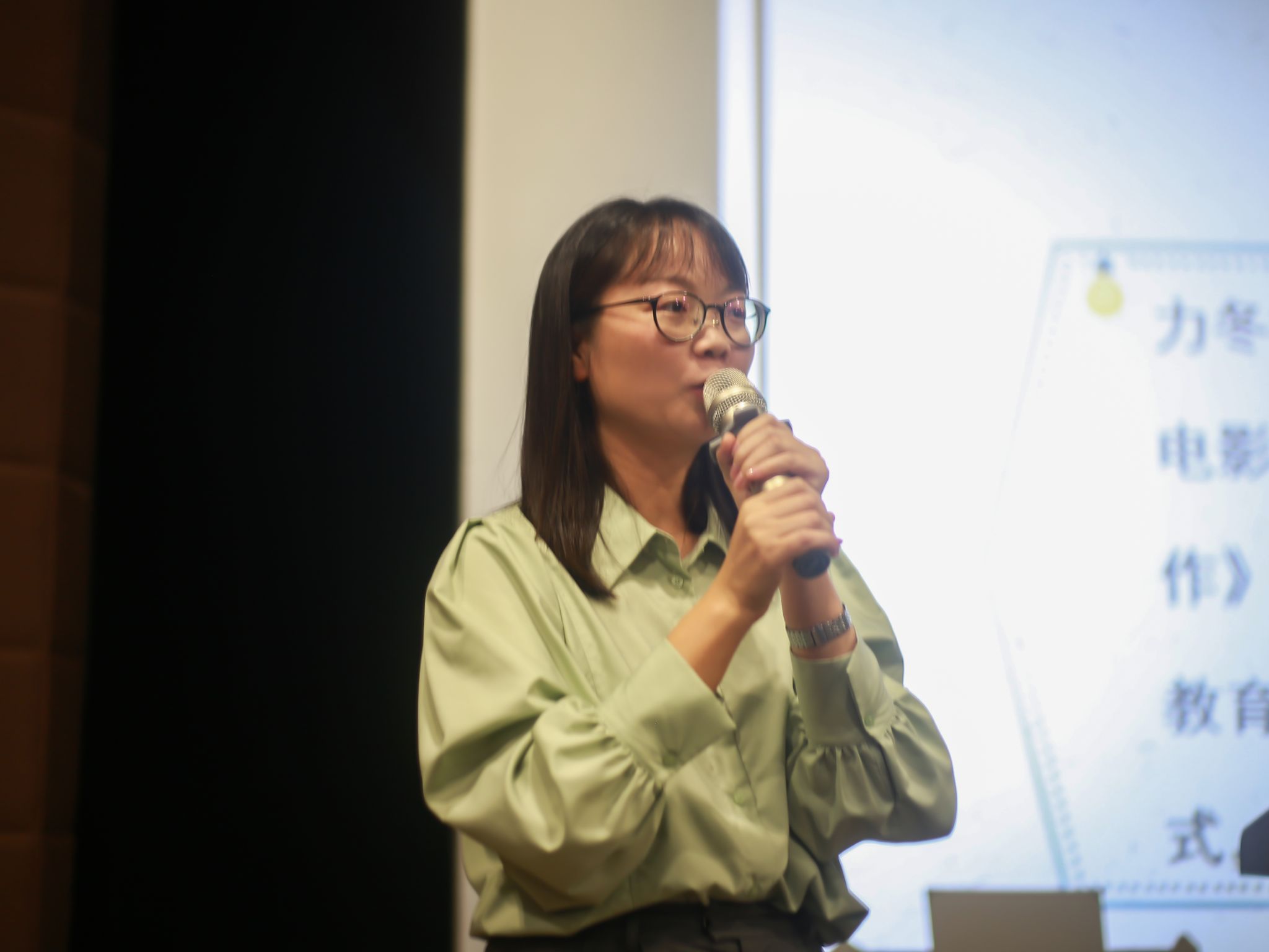 紧接着,开营仪式的特别嘉宾,来自电影评论中心的力冬梅老师与李骥老师分享了他们的思考。力老师表示:“电影不只是一种娱乐方式,更是我们得以窥见不同文化、不同思想的窗口。我相信,你们每个人都有潜力成为一名优秀的影评写作者。希望大家敢于表达,借由影评写作的方式,与电影对话,与世界对话。”