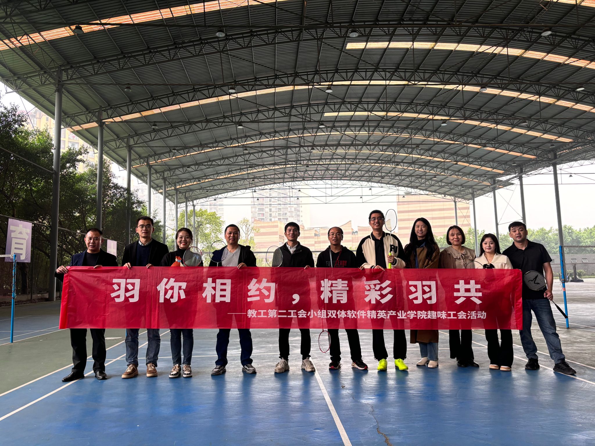 为通过竞技运动的方式,促进教师间的交流与合作,提升教师的身心健康,分泌多巴胺,释放教师身心压力,打造积极向上的团队氛围。教工第二工会小组双体软件精英产业学院特于2024年11月12日在我校风雨篮球场组织开展本次“羽你相约,精彩羽共”教工工会羽毛球赛。