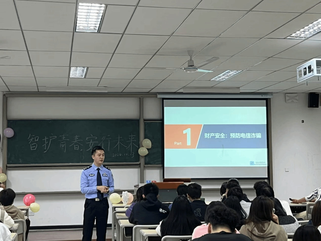 为了提高学生的“反诈防诈”安全意识,11月13日下午4:00,由智能工程学院、外国语学院、淬炼商学院三院的异科导师门联系草街派出所胡警官与合阳派出所杭警官在第九教学楼9305教室为学生们开展了一场防诈防骗专题知识讲座。在整个讲座过程中,民警给学生们进行了互动提问,设置多个与讲座内容紧密相关的问题,鼓励学生积极举手回答,民警根据回答情况给予点评,同学们也听得非常认真。