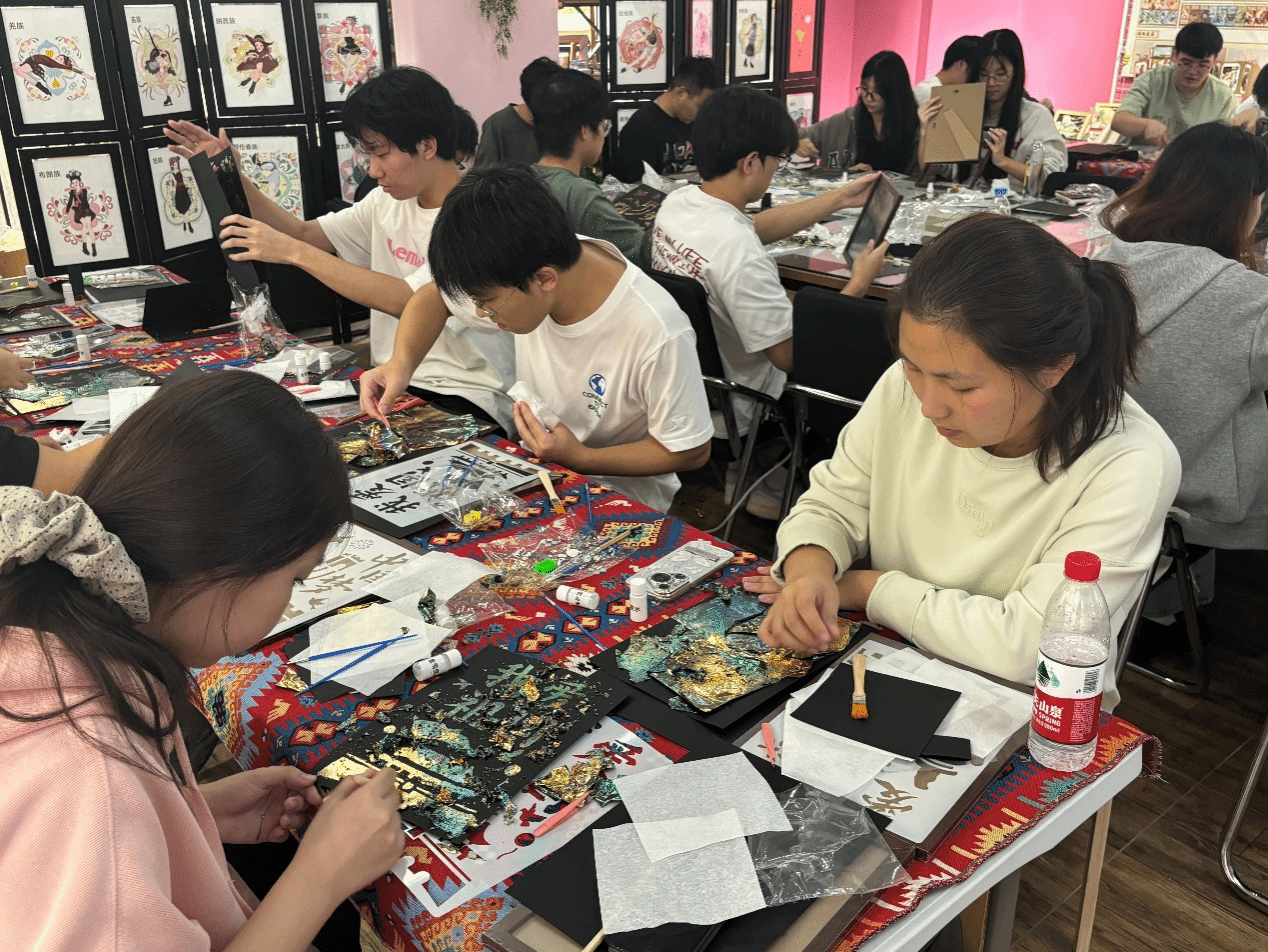 为了纪念抗美援朝胜利71周年,同时鼓励大学生深入了解并传承非遗文化,严倩倩、姜丽两位老师以鉴赏力为核心,在爱莲书院艺术实践室,组织开展“烽火记忆,箔画传颂”青年博学课堂活动。活动中,老师们首先介绍了抗美援朝相关历史、箔画制作工艺、箔画制作过程。随后,两位老师共同带领学生制作箔画。在烧箔画的创作过程中,活动特别强调融入抗美援朝战争中先烈们的英勇事迹和革命精神,通过艺术的形式表达对他们的缅怀和敬仰。这不仅是对先烈们的一种纪念,更是对同学们进行爱国主义教育的一种生动方式。