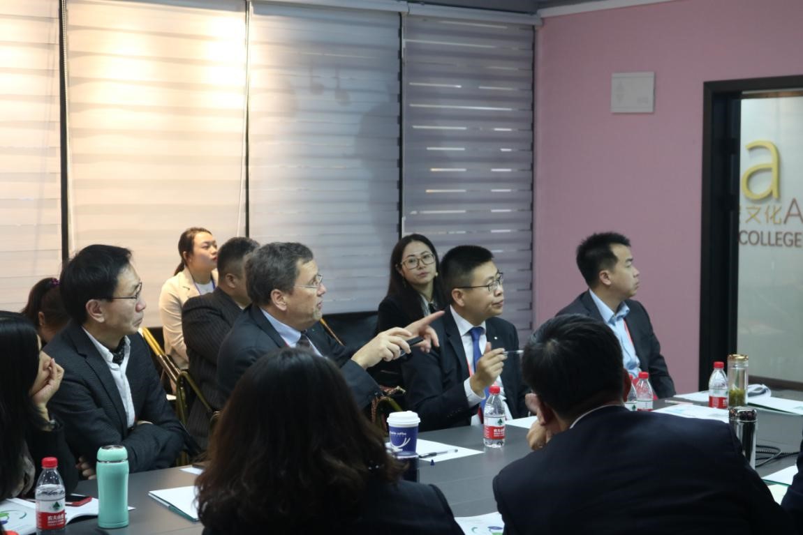 为更好的了解与完善FOM设计与创新管理硕士专业项目,让学生可以得到更好的发展,2019年10月28日第三届中德论坛期间,中德专家在爱莲书院召开了设计与创新管理硕士专业教师研讨会,由山西农业大学信息学院校长助理苏琳老师主持,邀请到FOM大学工程专业系主任,设计与创新管理教学主任Rudolf Jerrentrup教授、FOM大学设计与创新管理专业顾问委员会委员娄开明教授、山西农业大学信息学院经济管理学院苗敬毅教授、经济管理学院赵欣副院长、淬炼商学院许德芳副院长、山西农业大学程晓婷副教授、艺术传媒学院盛卓立副院长、国际交流与合作处尚美丽处长、移通学院艺术传媒学院副院长龚晓雪副教授、移通学院淬炼商学院陈晓曼副教授、寇小玲副教授等参加本次研讨会。